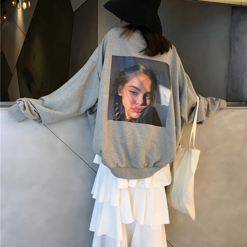 時尚套裝女秋新款貼布長袖衛衣寬松上衣高腰黑色蛋糕中長A字裙子