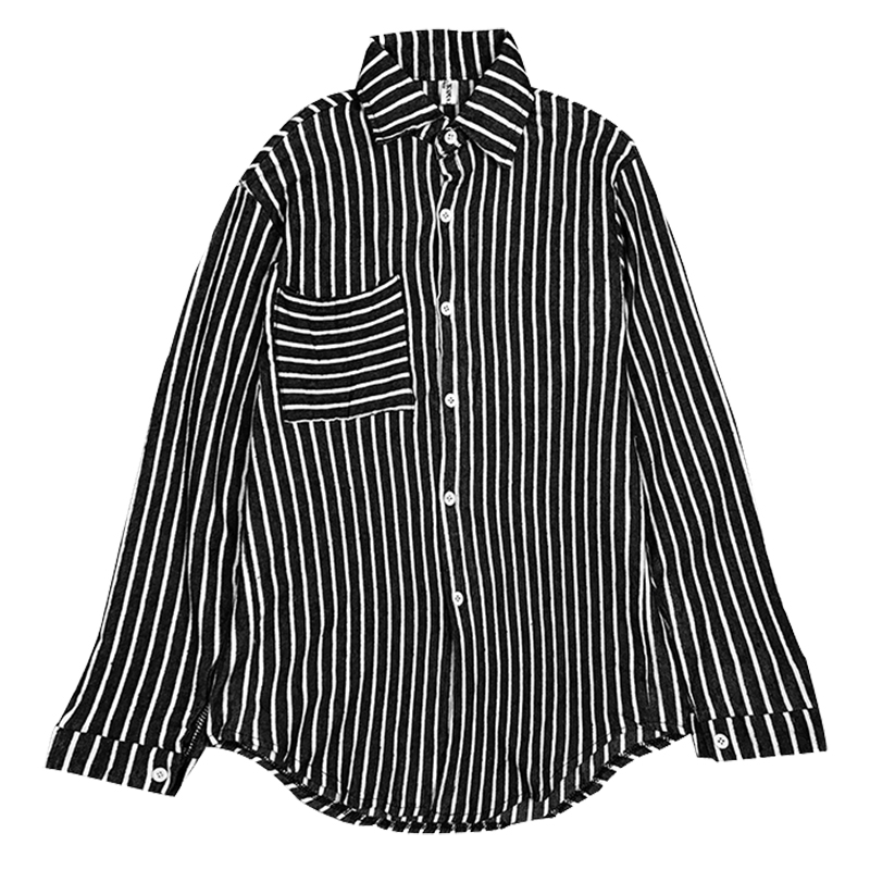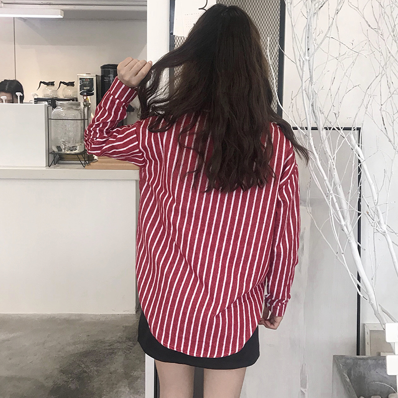 秋裝女2018新款韓版學生時尚中長條紋襯衫港味休閑寬松長袖上衣潮
