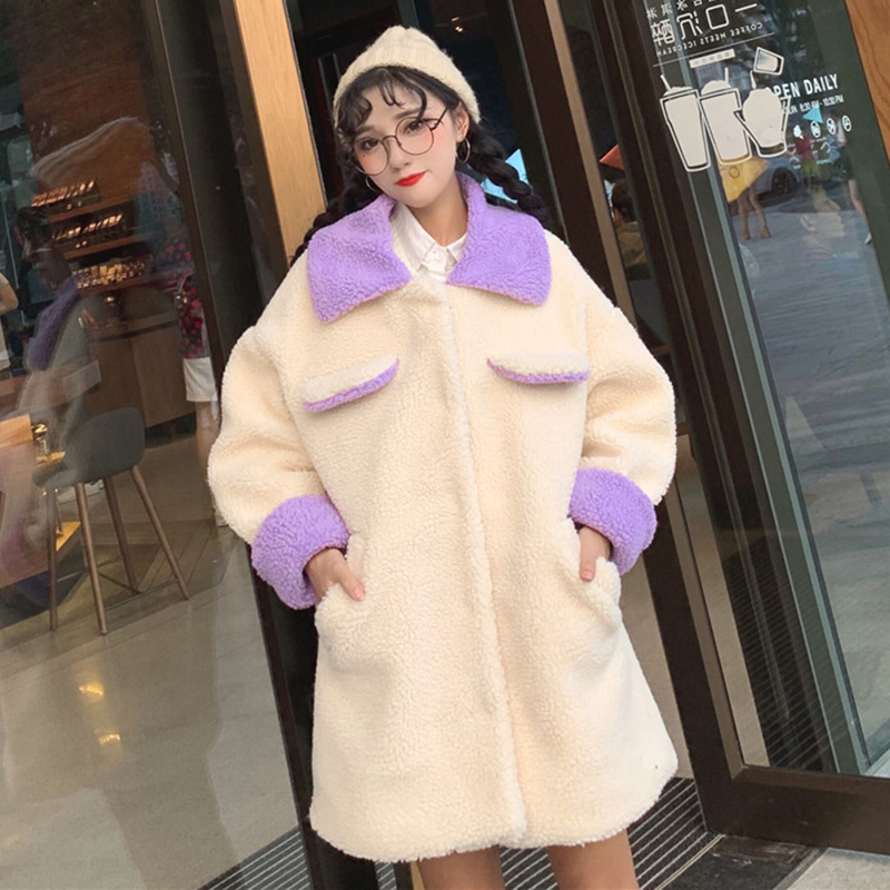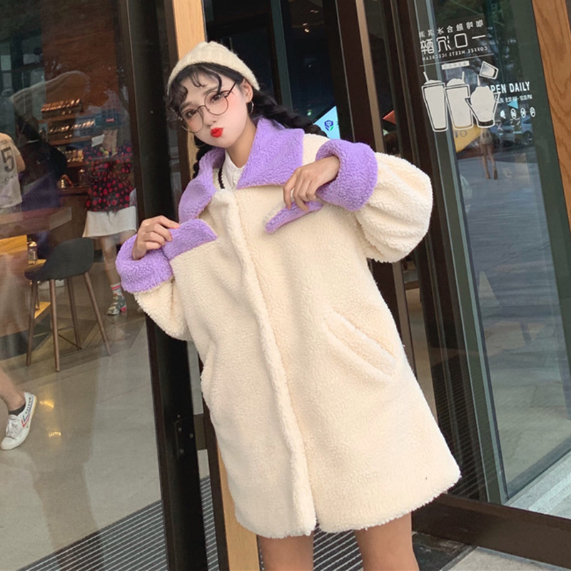 / chic風時尚撞色流行毛絨大衣女秋冬裝2018新款寬松加厚羊羔毛外套