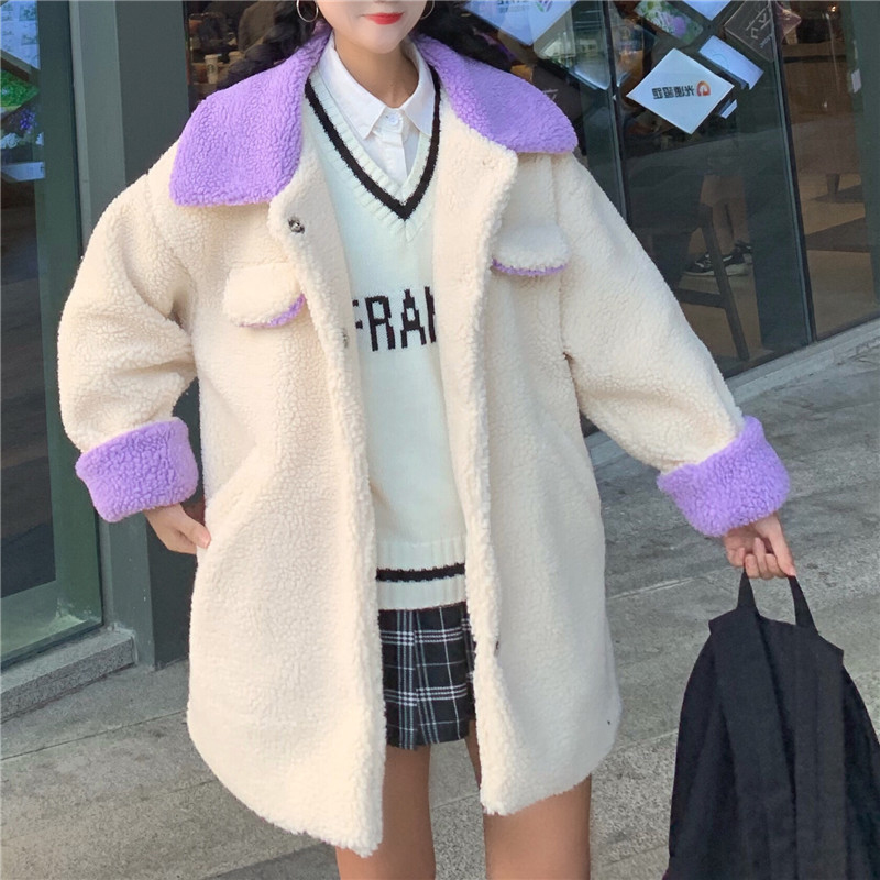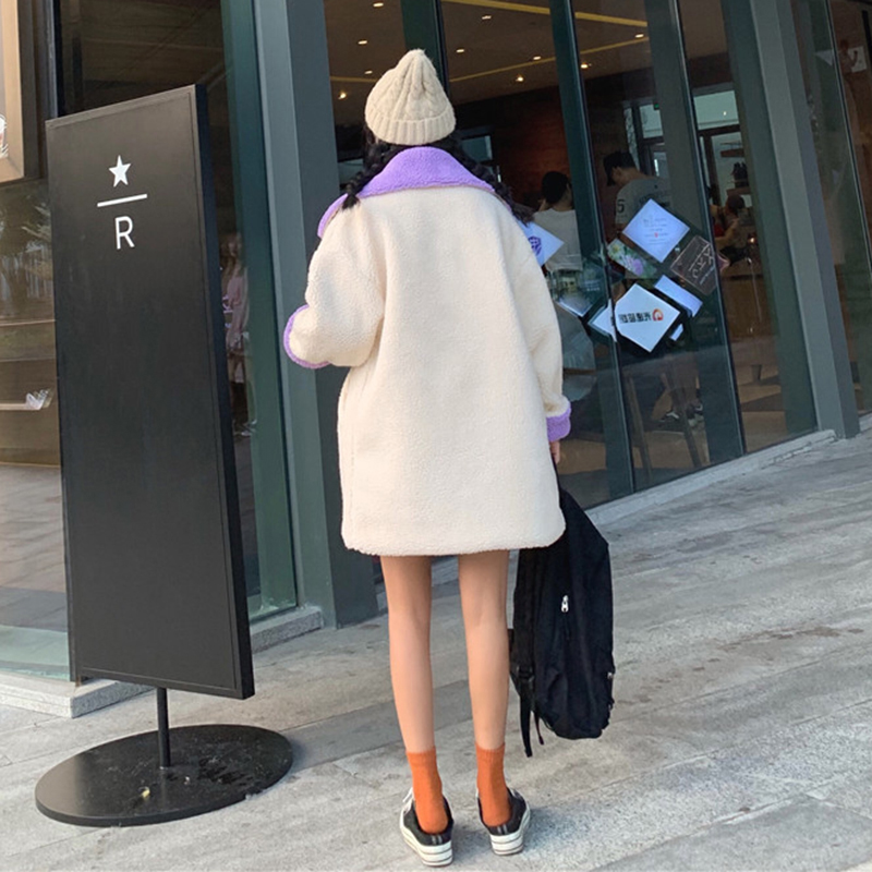 chic風時尚撞色流行毛絨大衣女秋冬裝2018新款寬松加厚羊羔毛外套