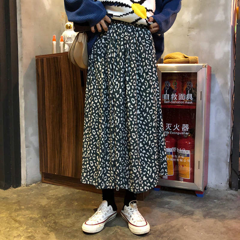 / 高腰顯瘦豹紋半身裙子女秋冬裝新款韓版chic學生復古風A字長裙子