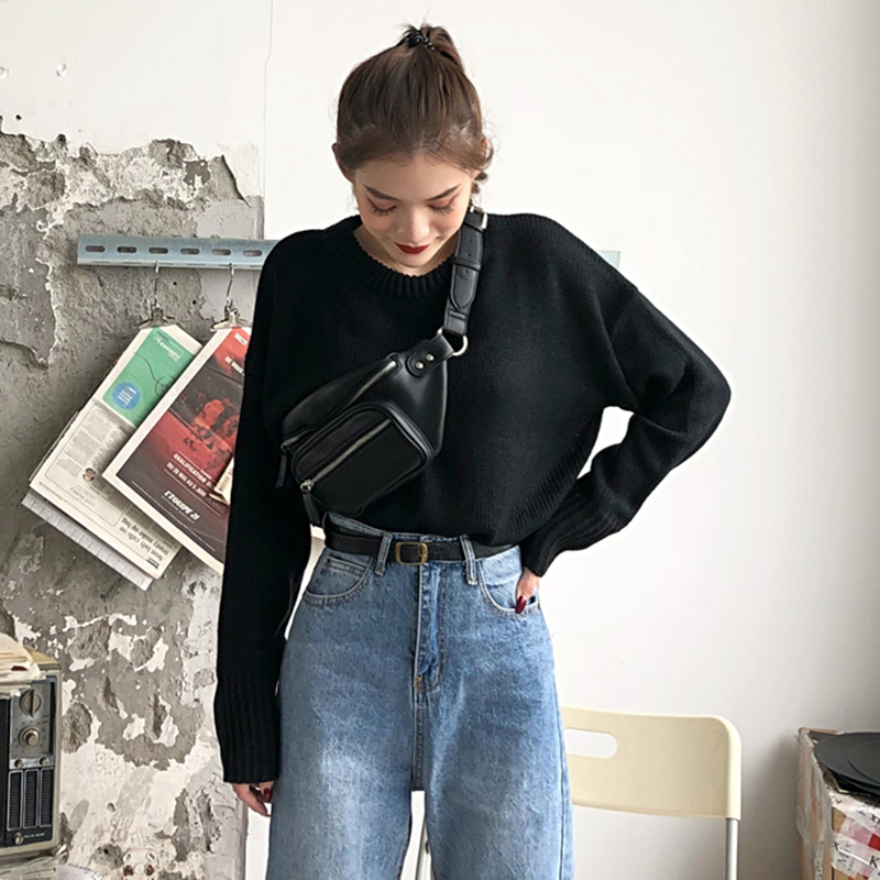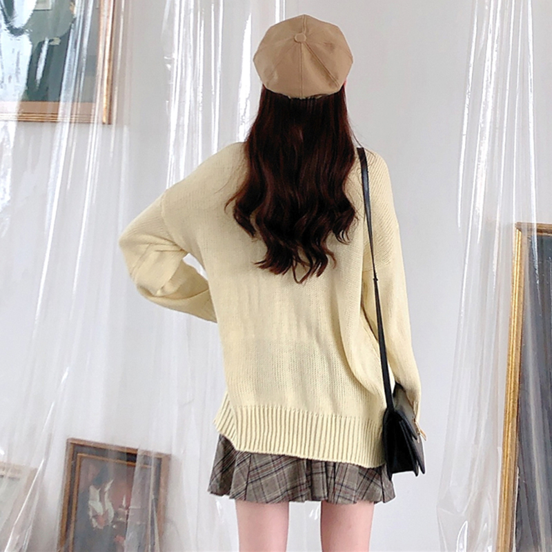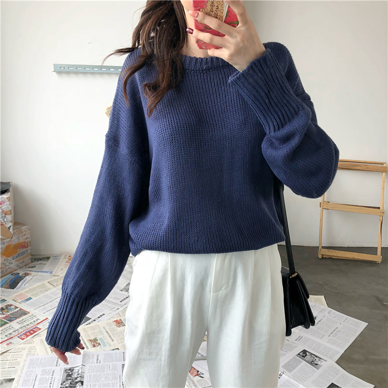 慵懶風套頭毛衣外套女秋冬裝2018新款韓版百搭寬松長袖針織衫上衣