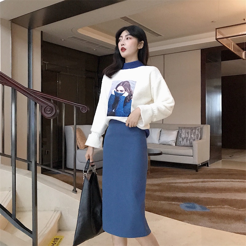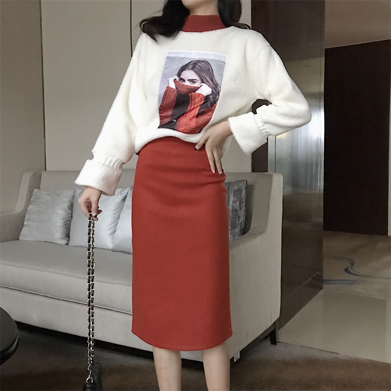 / 洋氣套裝女秋冬2018新款羊羔毛衛衣女+百搭中長款裙子時尚兩件套