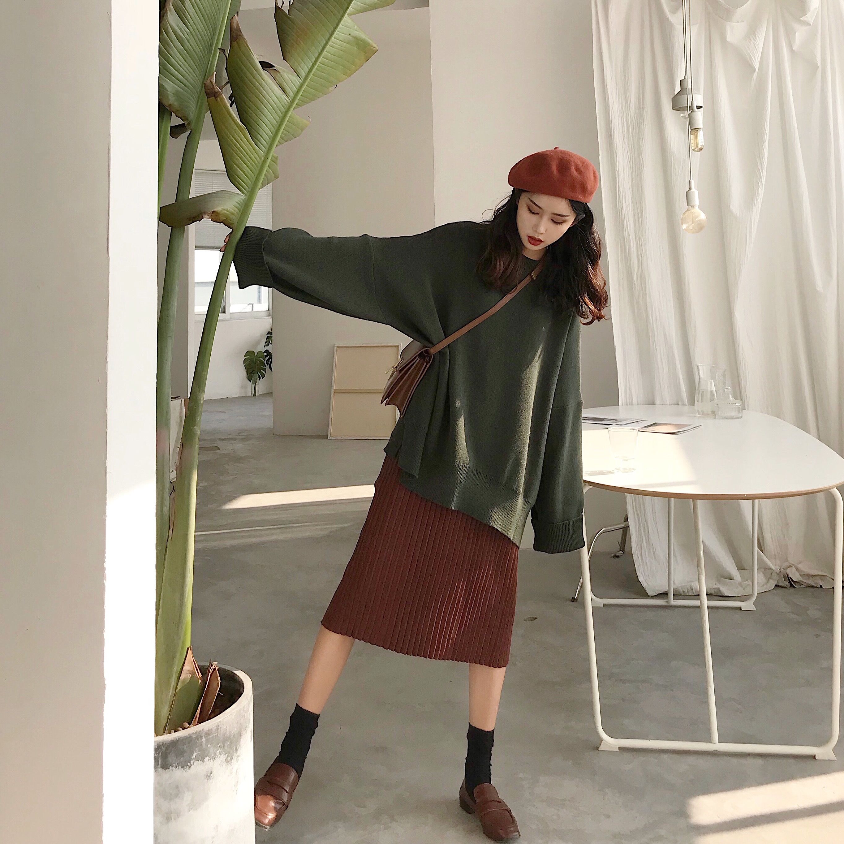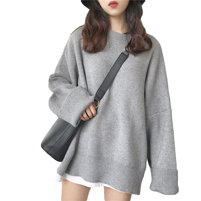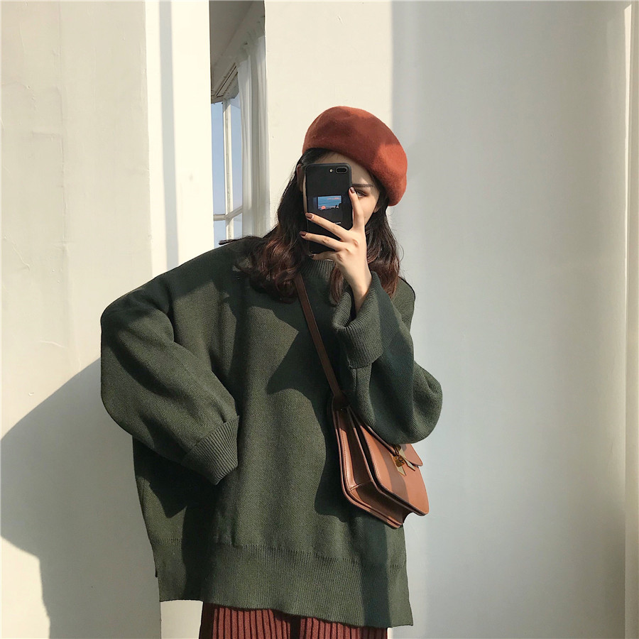 網紅毛衣女2018新款慵懶復古寬松oversize大袖子簡約套頭毛線衣潮