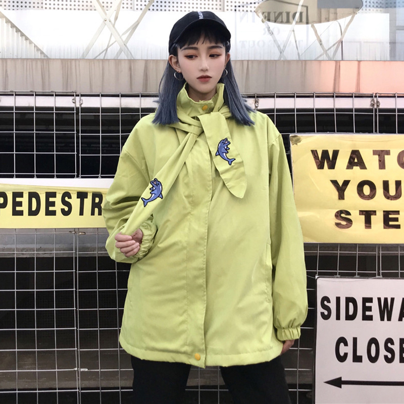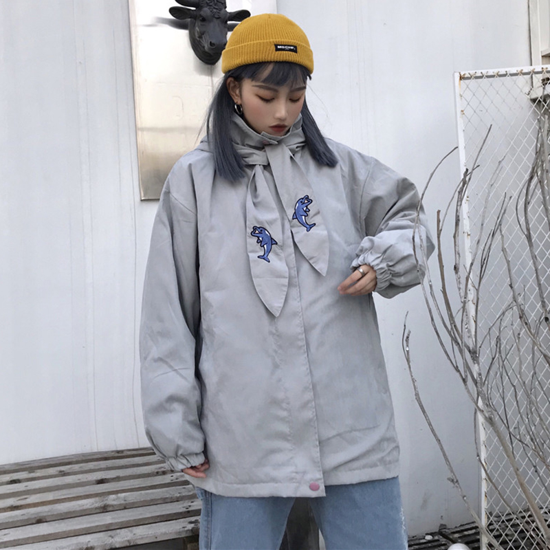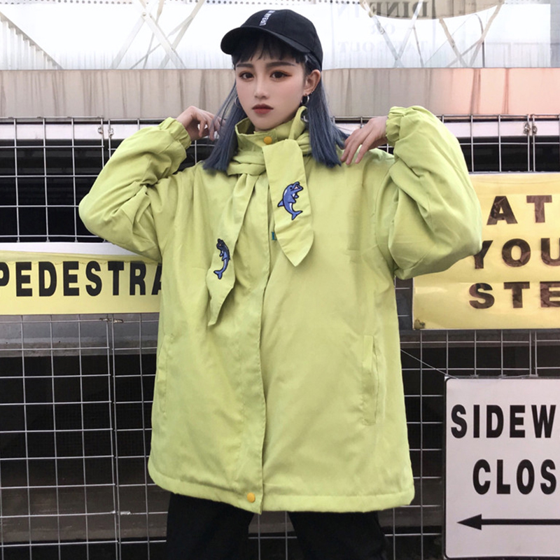 時尚刺繡寬松連帽棉襖2018冬季女裝新款學生中長款外套休閑棉衣服