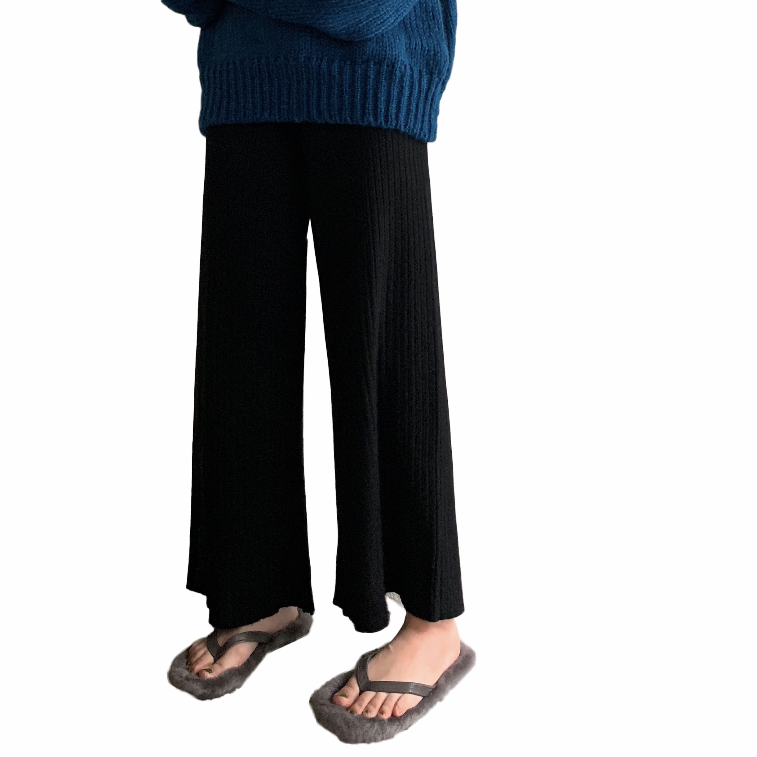 / 黑色高腰闊腿寬松休閑針織褲女秋冬2018新款韓版chic直筒顯瘦長褲