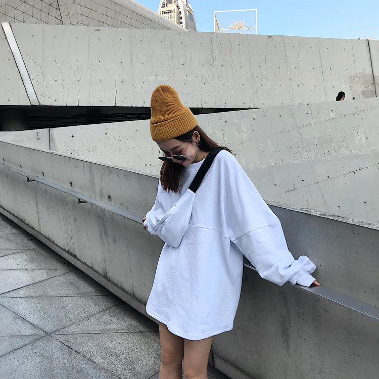 衛衣2018新款女長袖韓版寬松顯瘦oversize印花半高領慵懶長款裙子