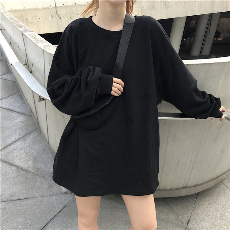 復古韓國chic風百搭寬松薄款長袖圓領T恤衛衣多色秋裝女2018新款