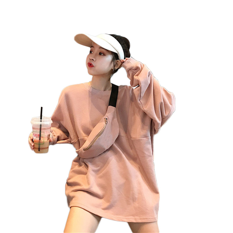 韓版時尚秋季女裝套裝女夏2018新款寬松顯瘦圓領長袖衛衣+腰包潮