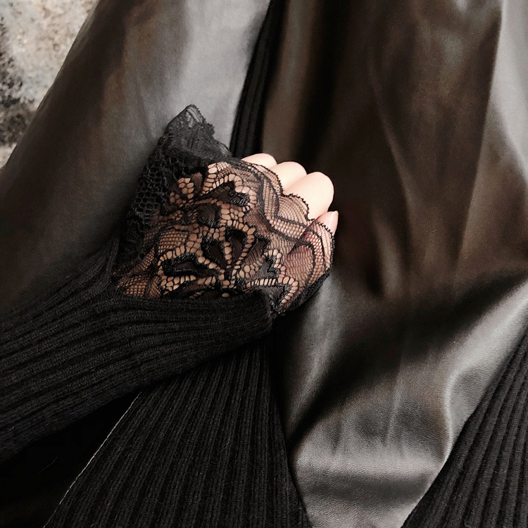 / 冬裝女2018新款裙子毛衣時尚女神顯瘦拼接皮高領百搭打底連衣裙女