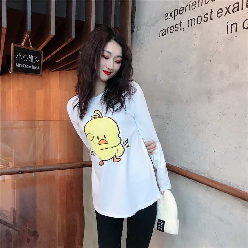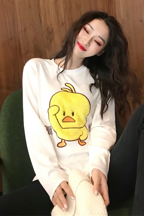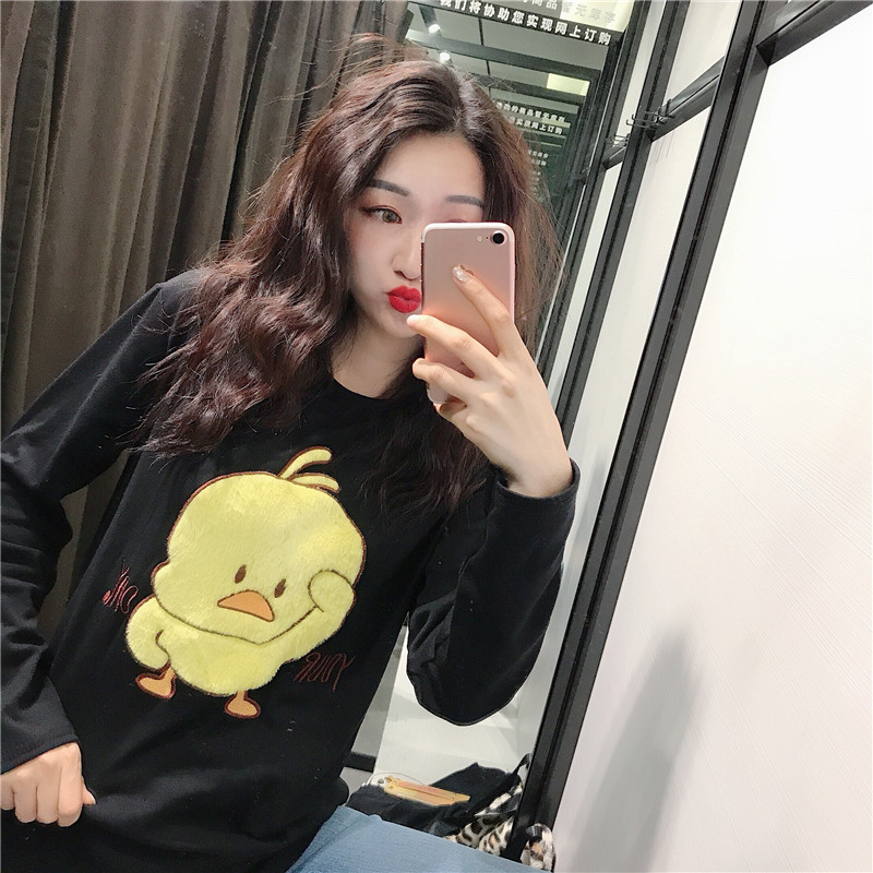 冬裝上衣女慵懶長袖t袖女韓版休閑寬松圓領百搭可愛小黃鴨上衣潮