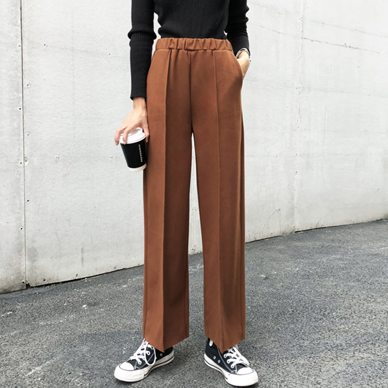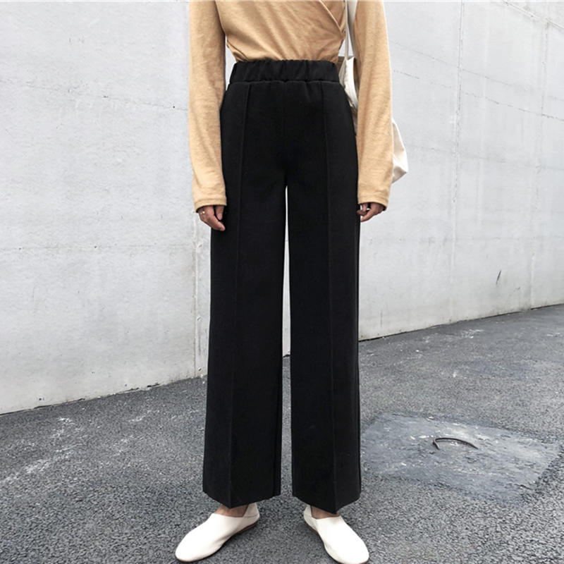 / 松緊高腰顯瘦休閑褲子女秋冬裝新款學生復古風寬松黑色闊腿九分褲