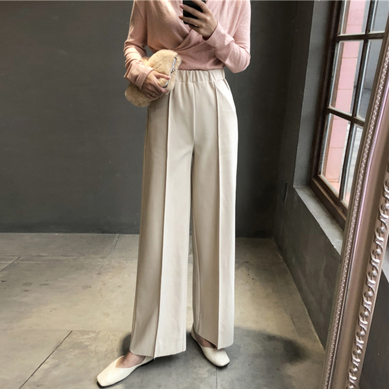 松緊高腰顯瘦休閑褲子女秋冬裝新款學生復古風寬松黑色闊腿九分褲