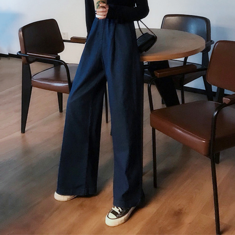/ 時尚直筒闊腿牛仔褲秋裝女2018新款復古港味高腰寬松拖地長褲子潮