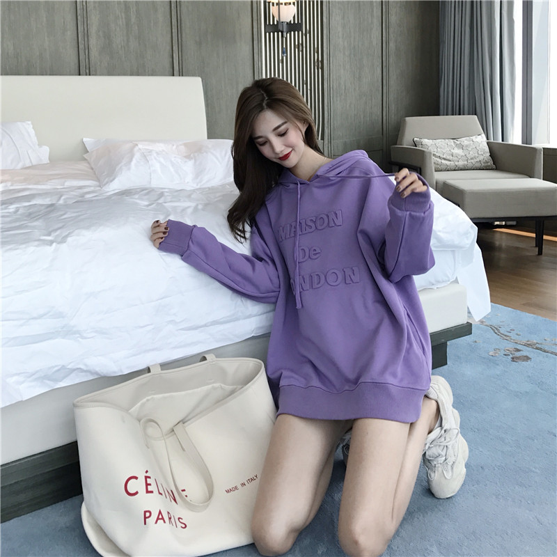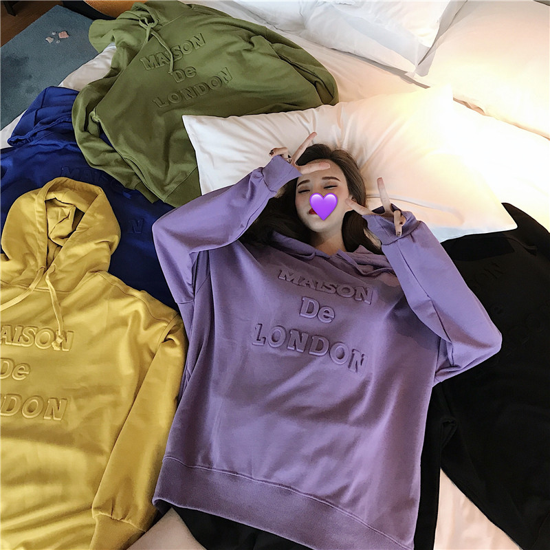 / 港味時尚復古百搭寬松簡約字母上衣長袖連帽薄款衛衣2018新款女裝