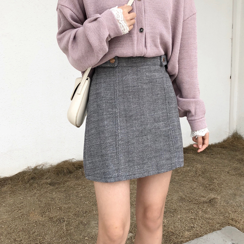 / 毛呢半身短裙子女冬裝2018新款韓版氣質高腰a字裙修身顯瘦包臀裙
