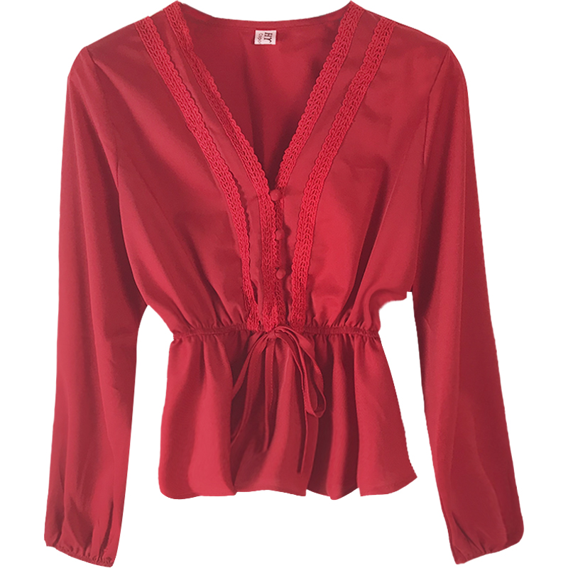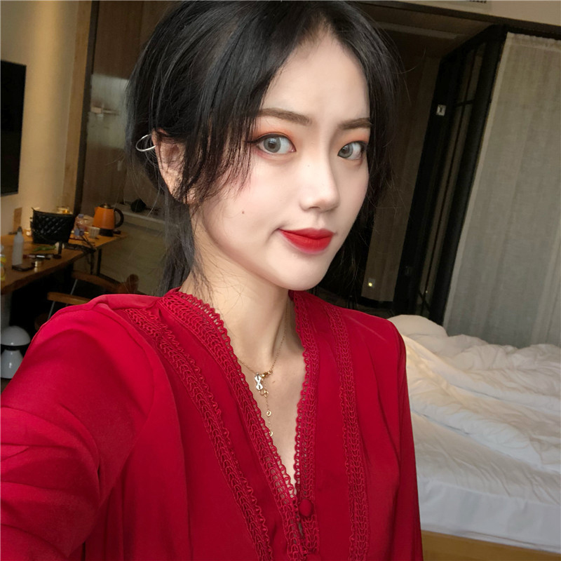 白襯衫女秋裝新款花邊V領燈籠長袖襯衣韓版百搭高腰短款氣質上衣
