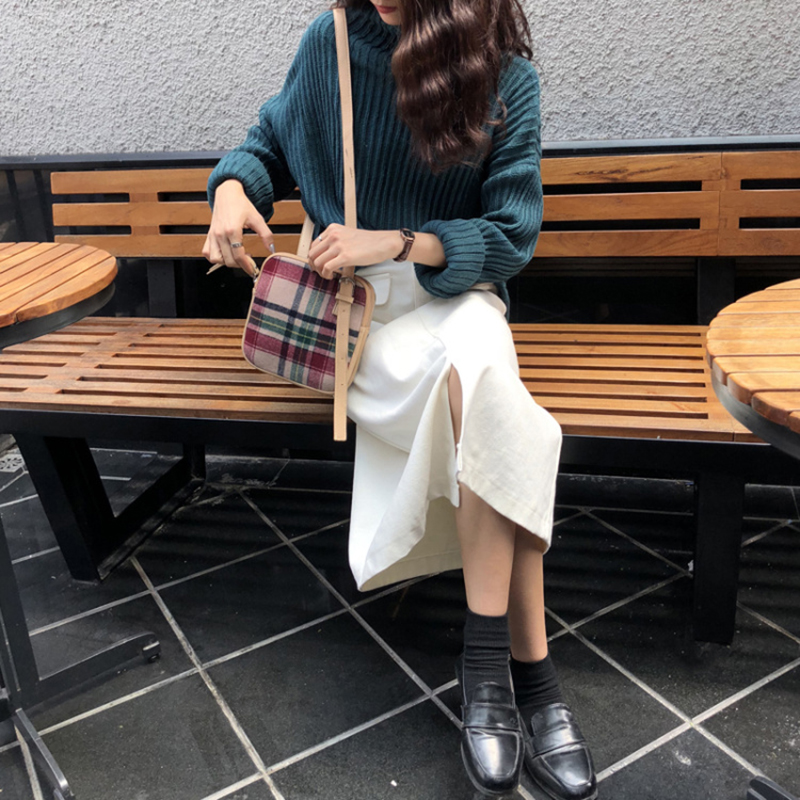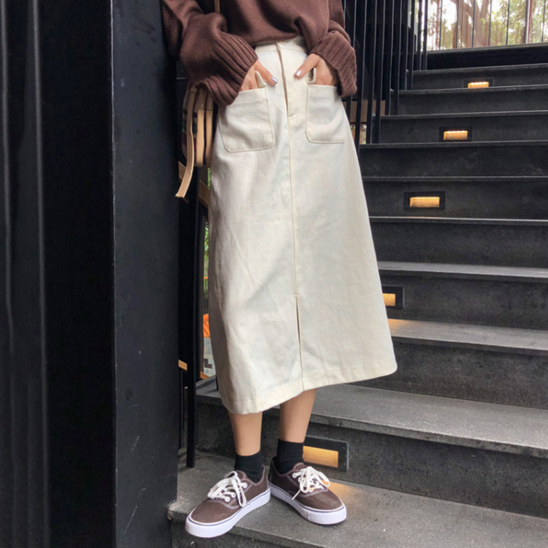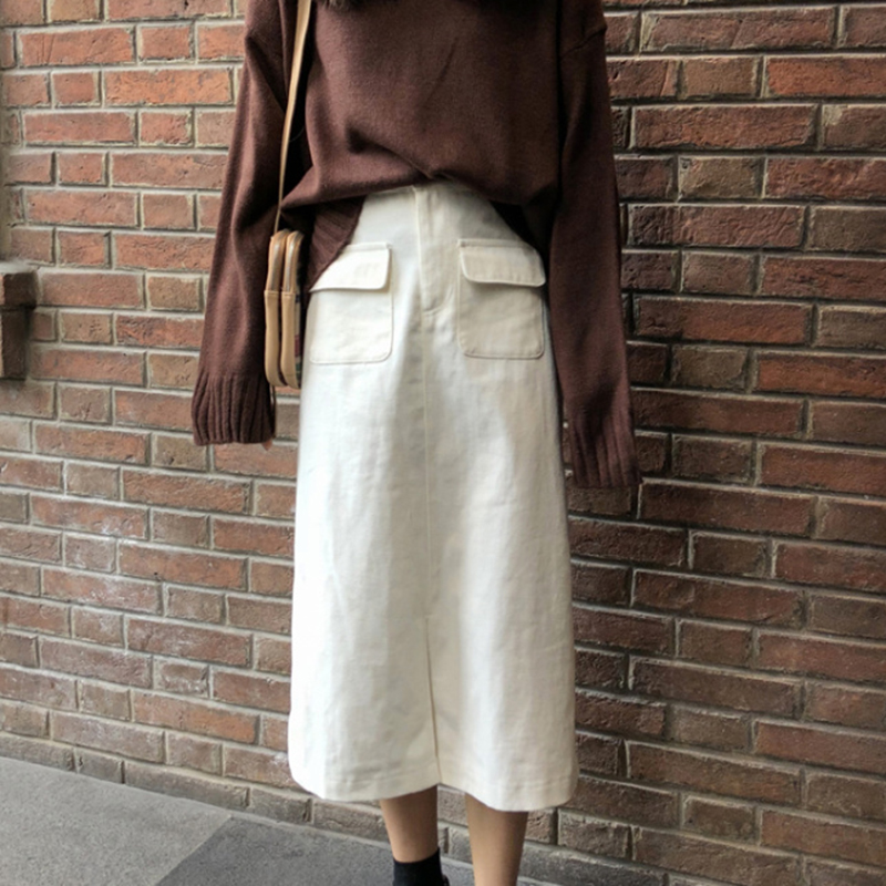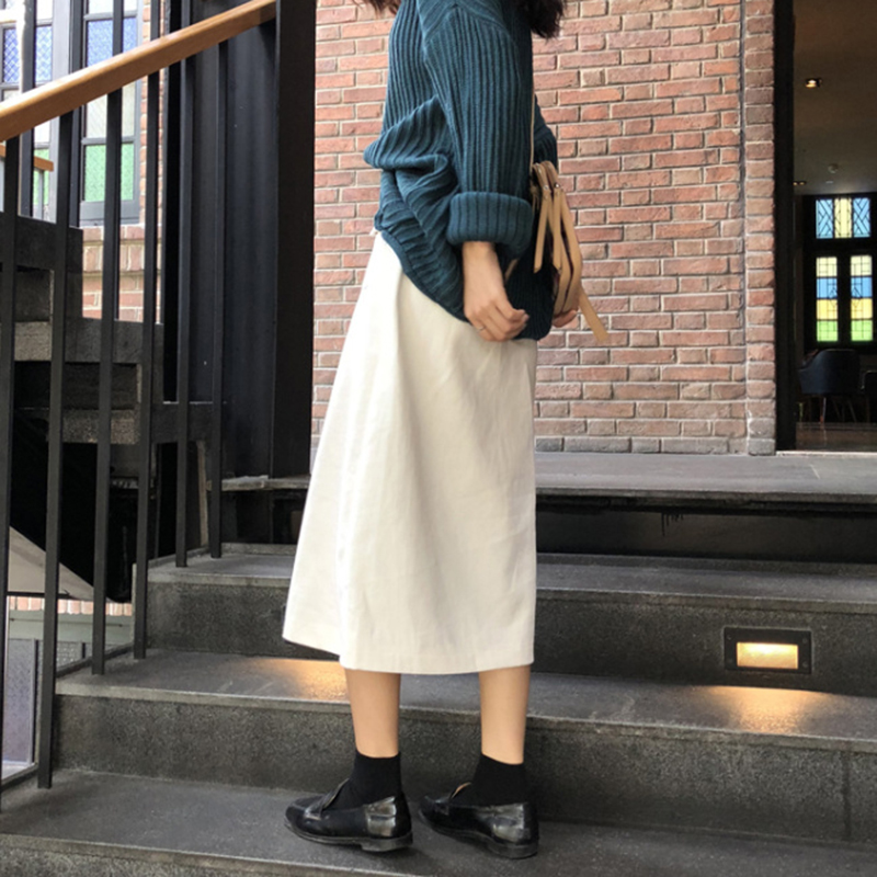/ 半身裙女秋冬裝2018新款韓版chic高腰中長裙時尚下擺開叉A字裙子
