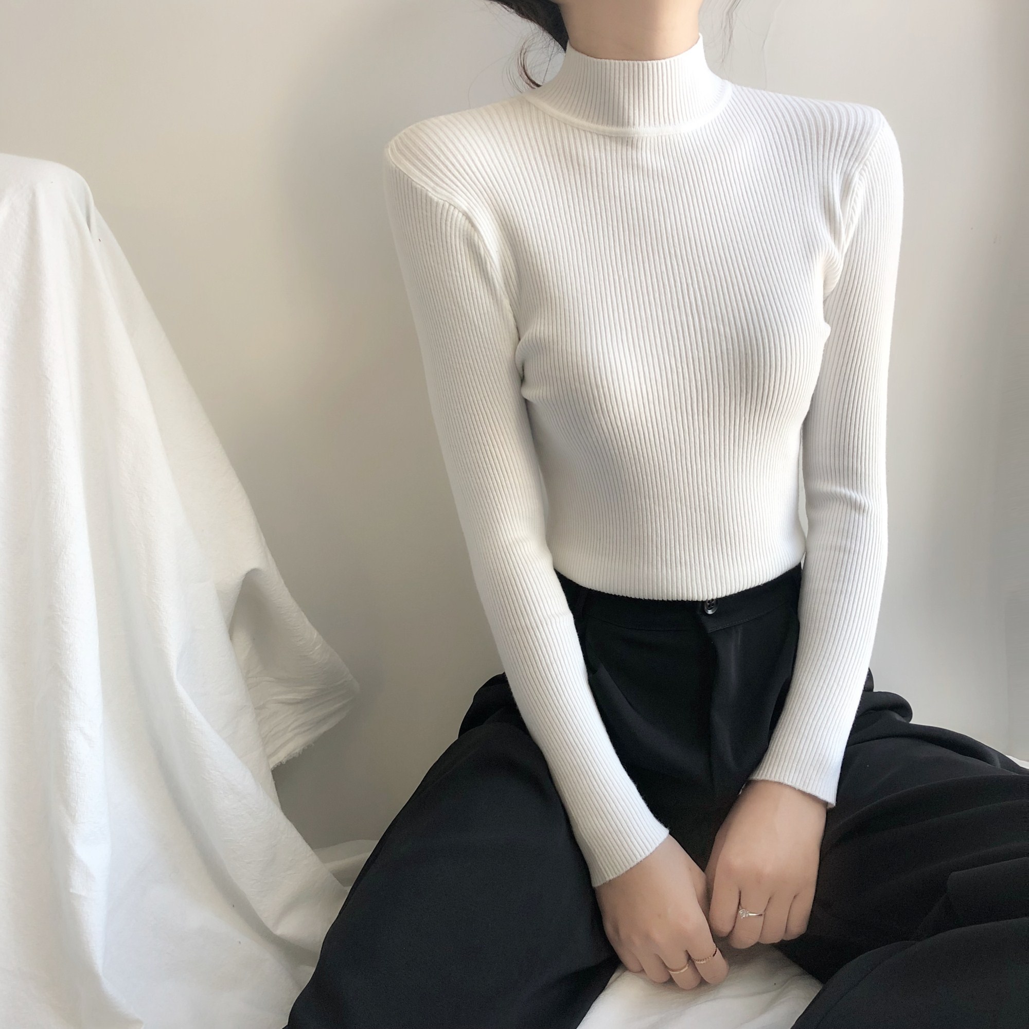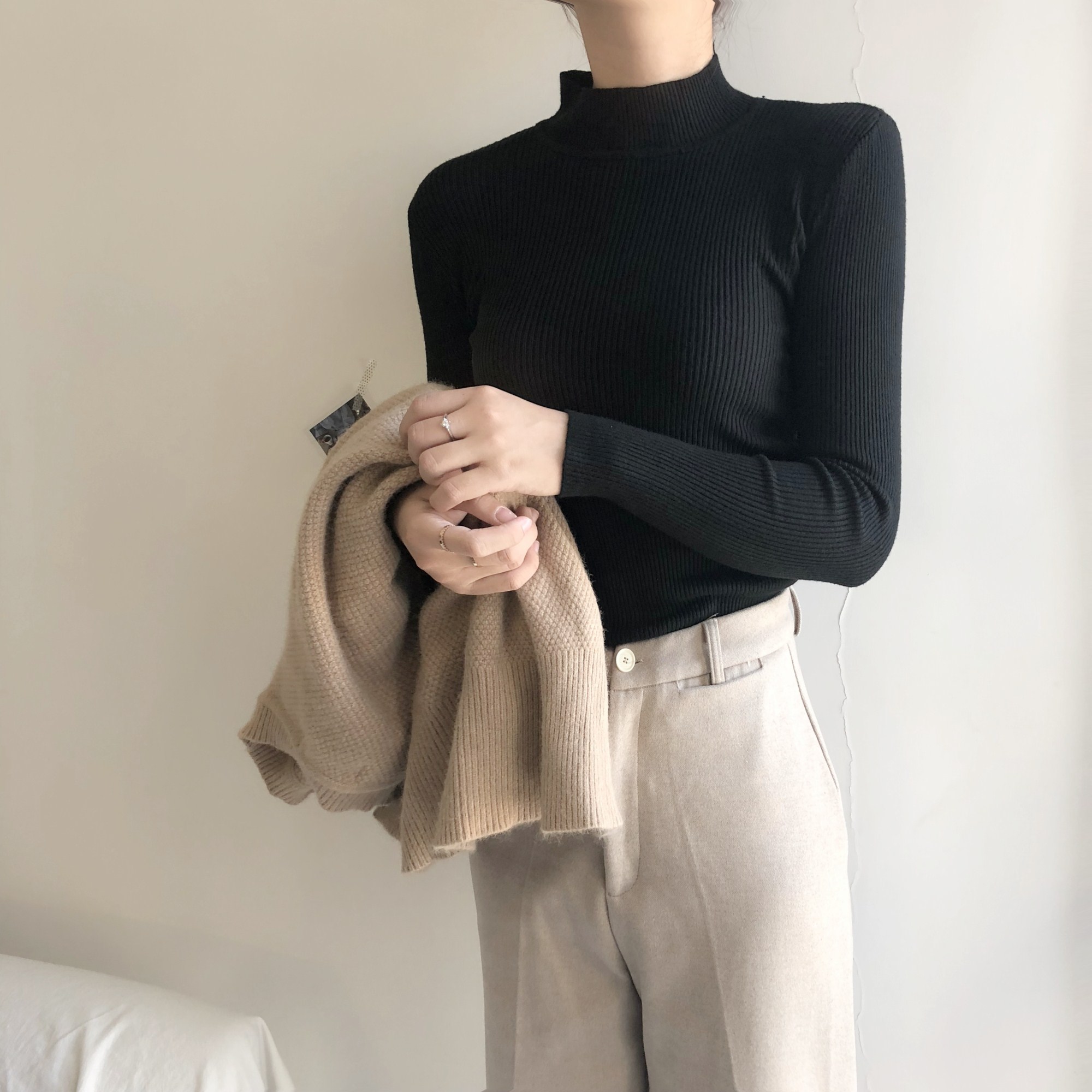 韓版秋冬基礎款慵懶風毛衣女套頭半高領針織打底衫內搭長袖上衣潮