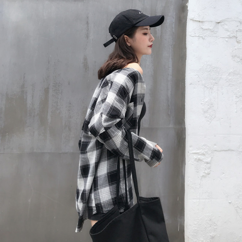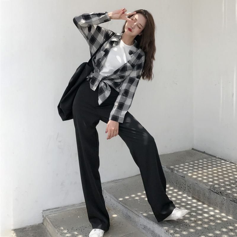 / 時尚套裝女秋冬2018新款格子長袖襯衫薄外套高腰顯瘦休閑闊腿長褲