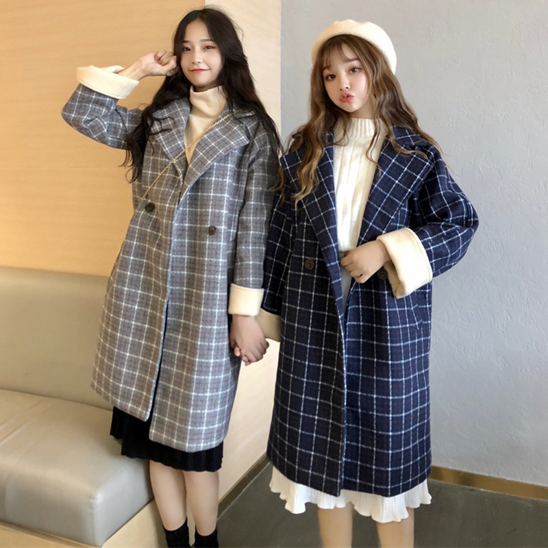 毛呢外套女裝中長款韓版2018流行秋冬季新款寬松夾棉加厚格子大衣