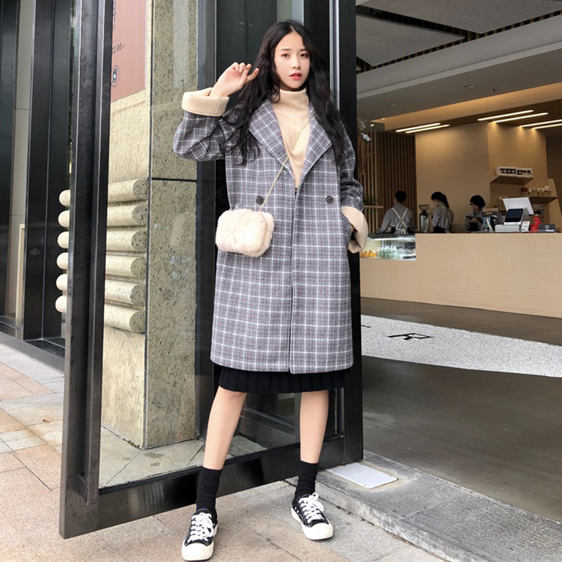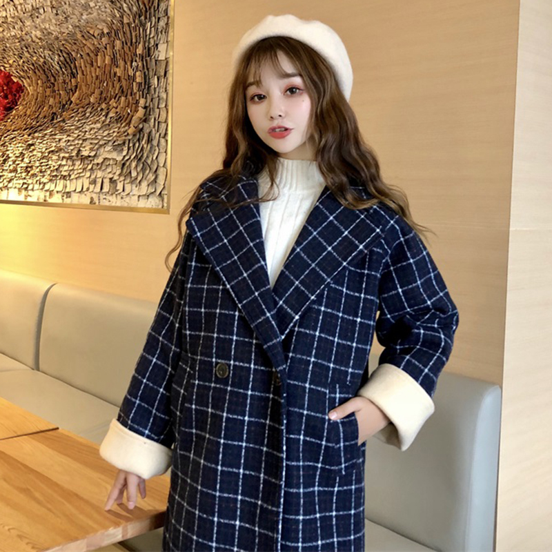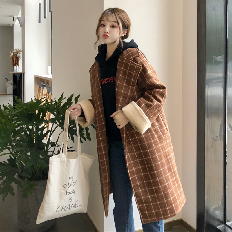 / 毛呢外套女裝中長款韓版2018流行秋冬季新款寬松夾棉加厚格子大衣