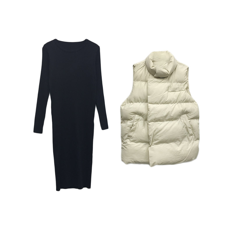 / 氣質港味百搭面包服棉衣馬甲外套女+時尚圓領百搭長款針織連衣裙