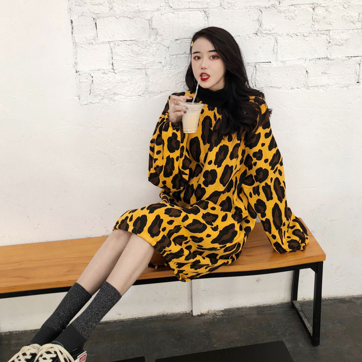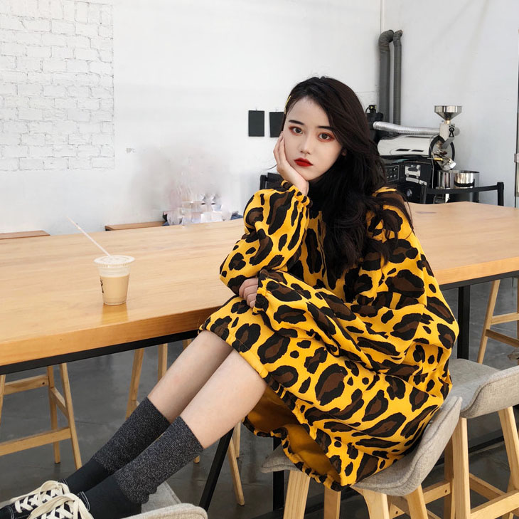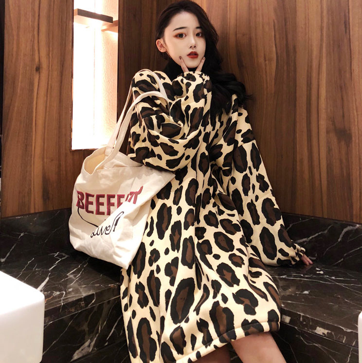 / 復古港味慵懶風上衣女寬松豹紋蹦迪長袖保暖長衛衣女秋冬2018新款