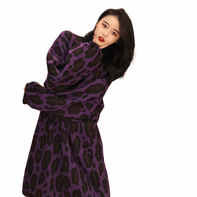 復古港味慵懶風上衣女寬松豹紋蹦迪長袖保暖長衛衣女秋冬2018新款