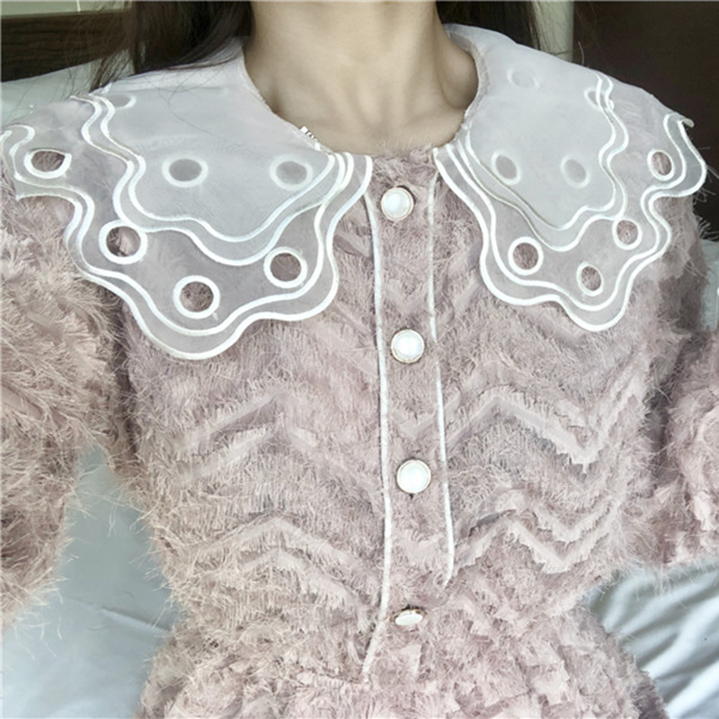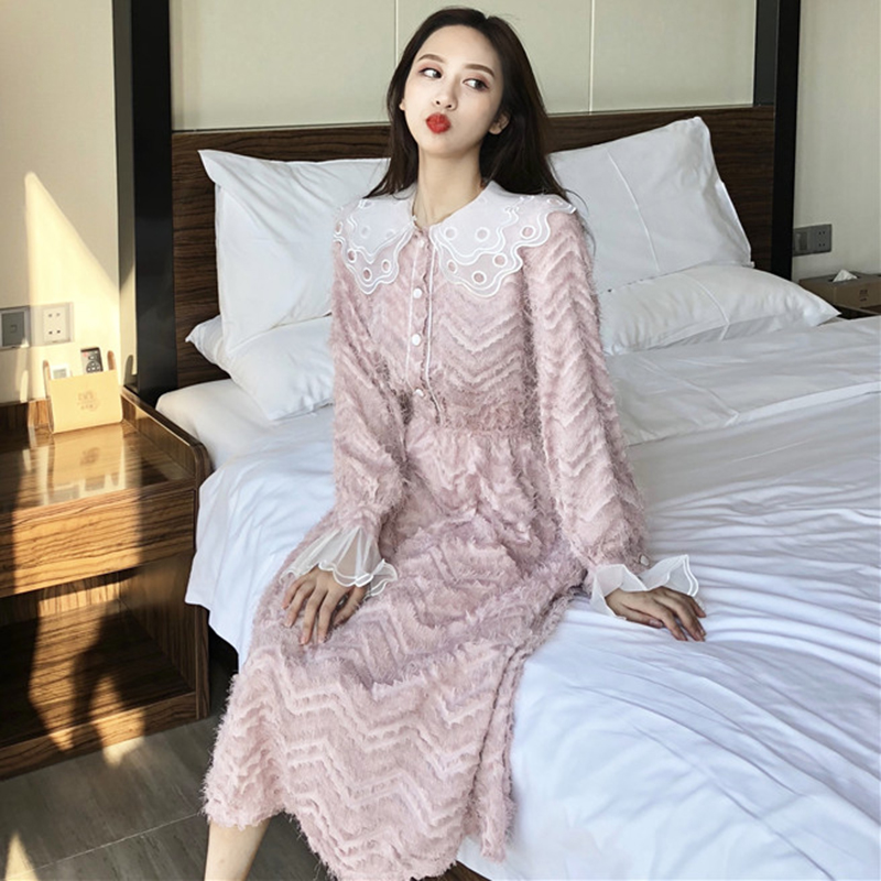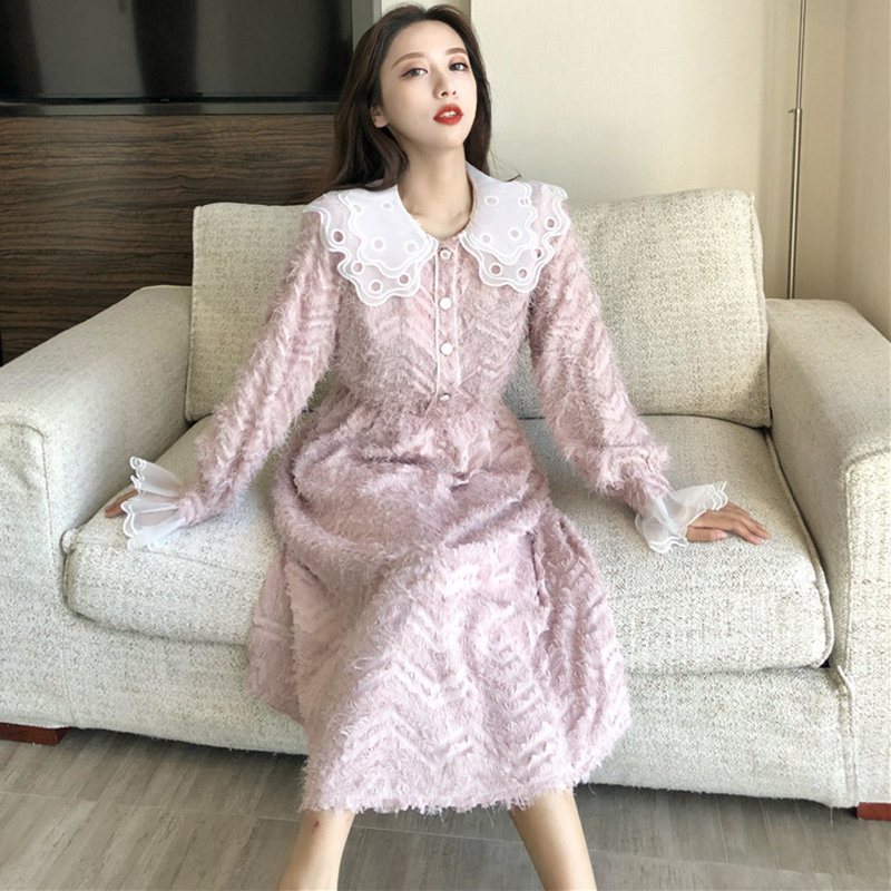 / 復古法式egg連衣裙子女秋冬裝新款高腰顯瘦氣質網紗拼接長袖A字裙