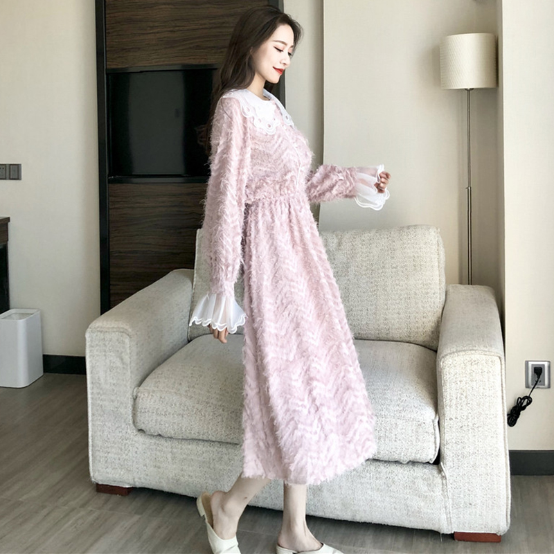 復古法式egg連衣裙子女秋冬裝新款高腰顯瘦氣質網紗拼接長袖A字裙