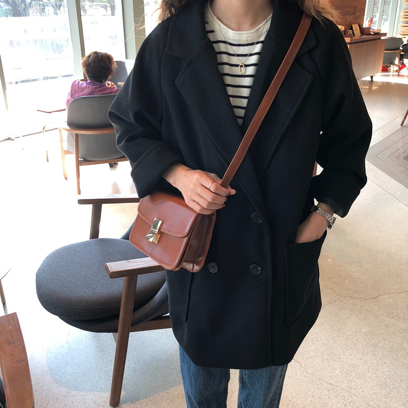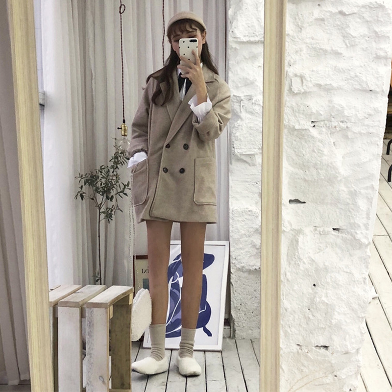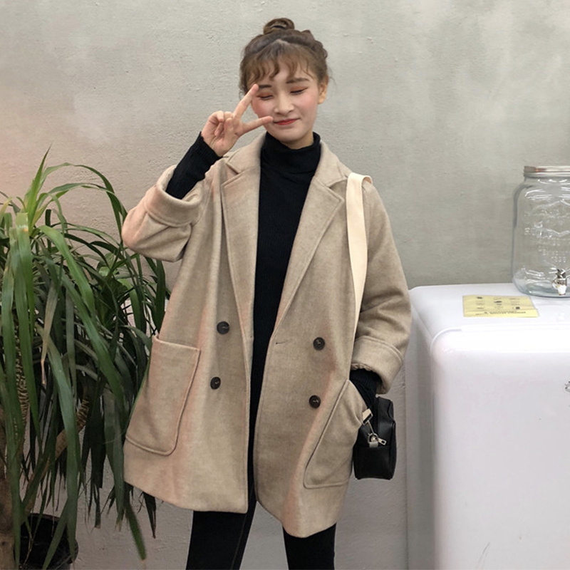 2018中長款流行呢子大衣女冬裝2018新款韓版寬松翻領長袖毛呢外套