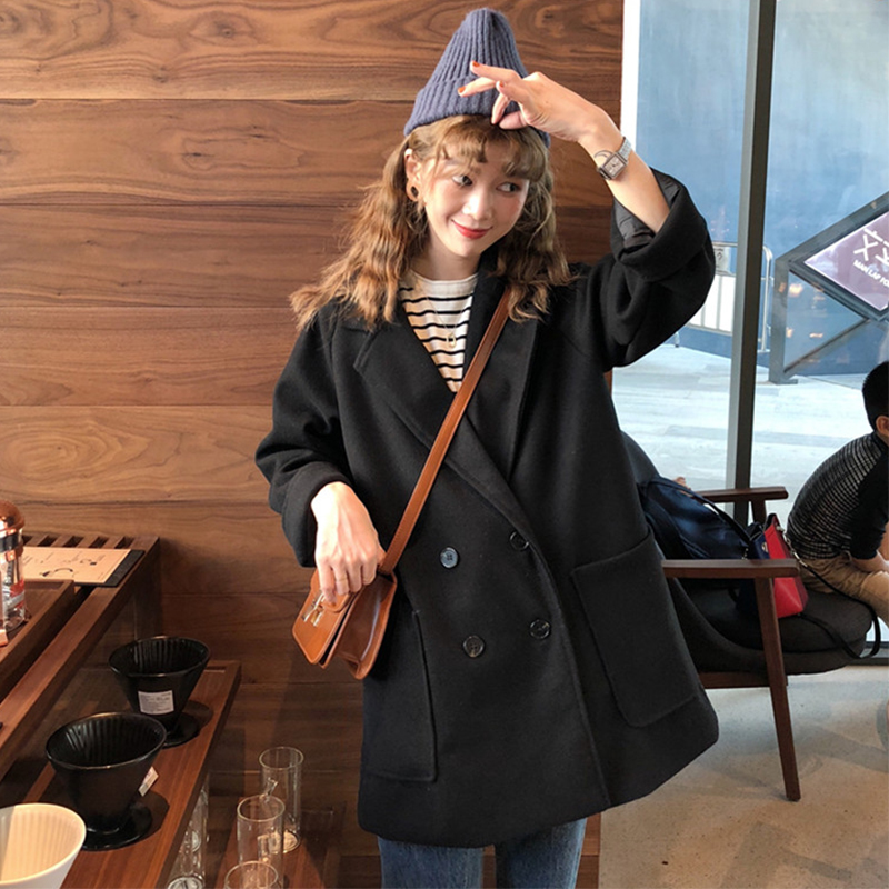 / 2018中長款流行呢子大衣女冬裝2018新款韓版寬松翻領長袖毛呢外套