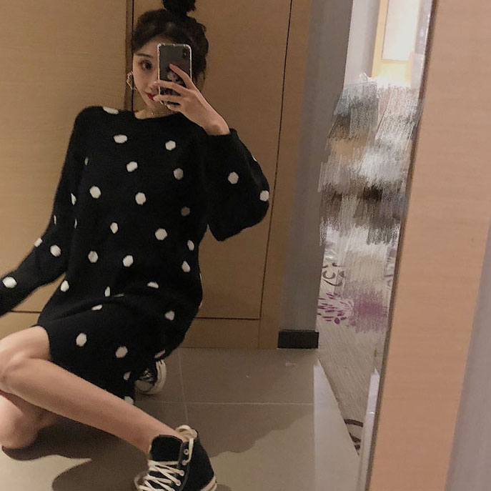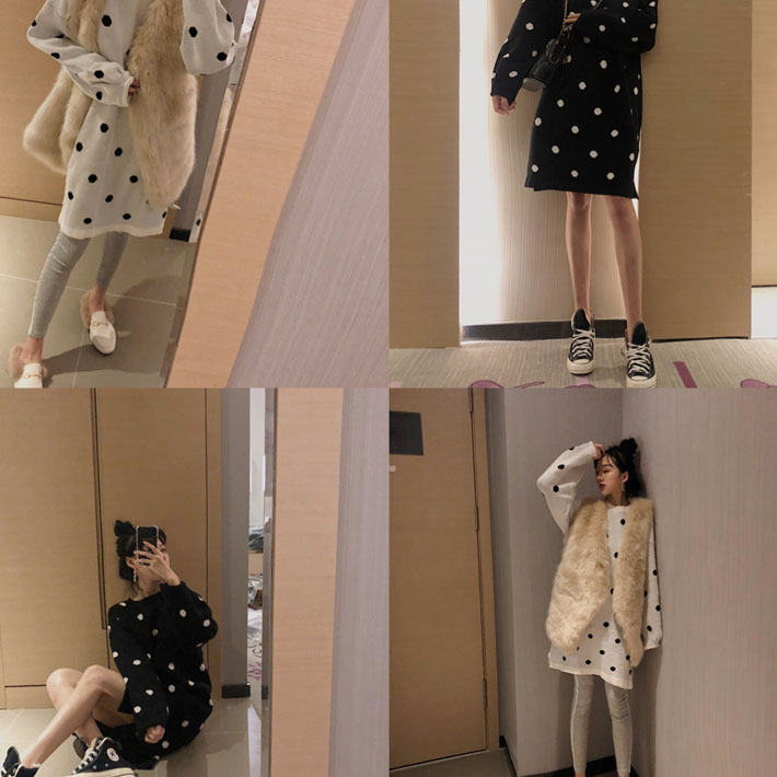 白色波點連衣裙|黑色波點連衣裙|杏色馬甲