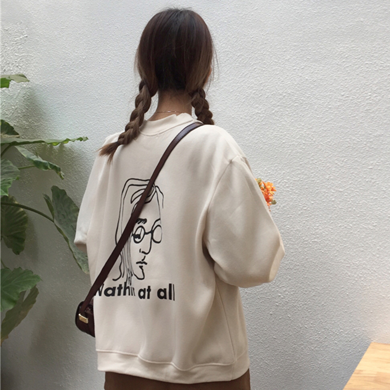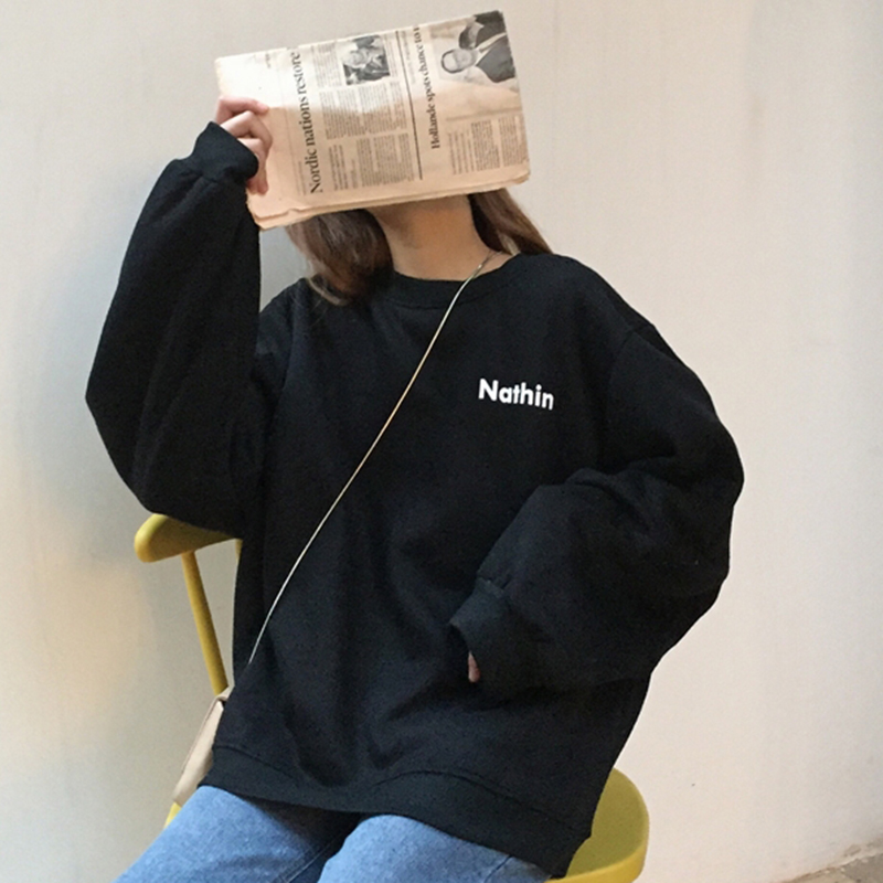 / 秋冬新款女裝韓版字母印花套頭加絨衛衣外套學生寬松休閑長袖上衣