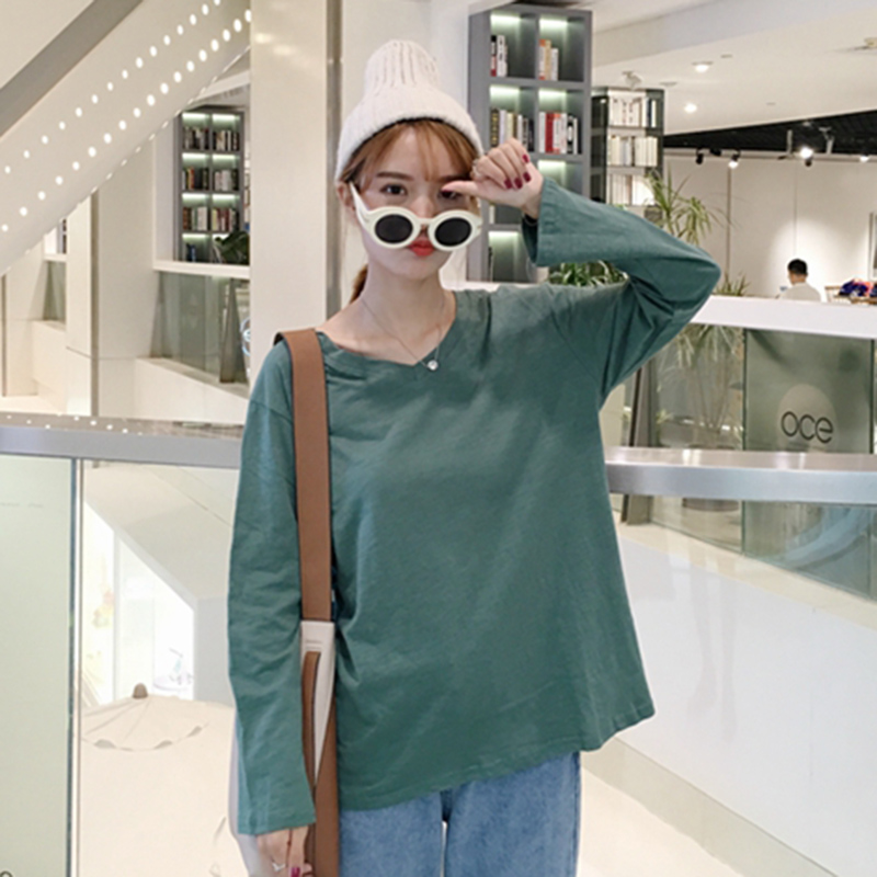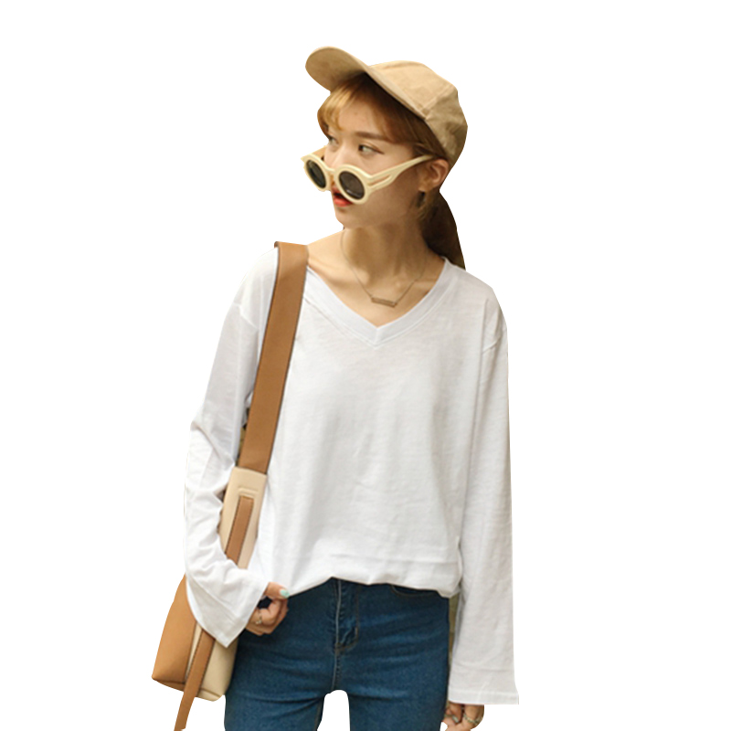 秋裝體恤女2018新款韓版簡約長袖白T恤學生港風休閑寬松打底上衣