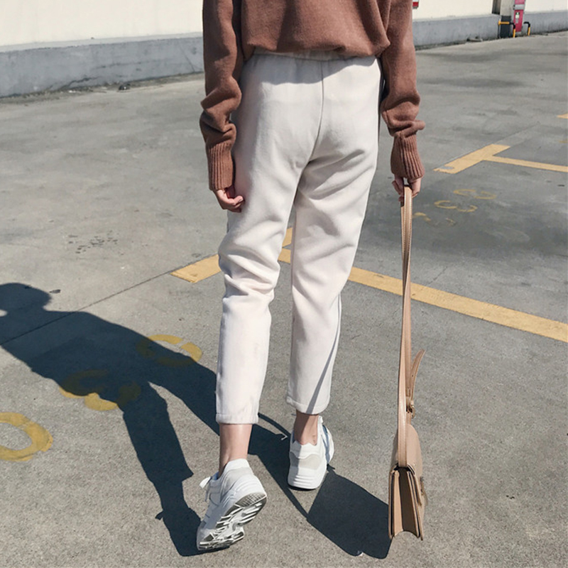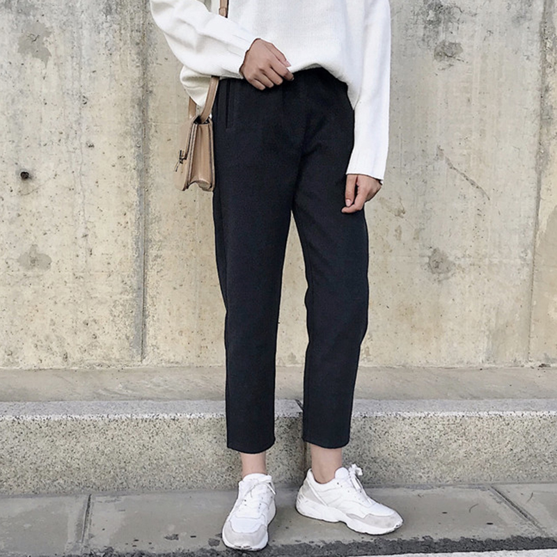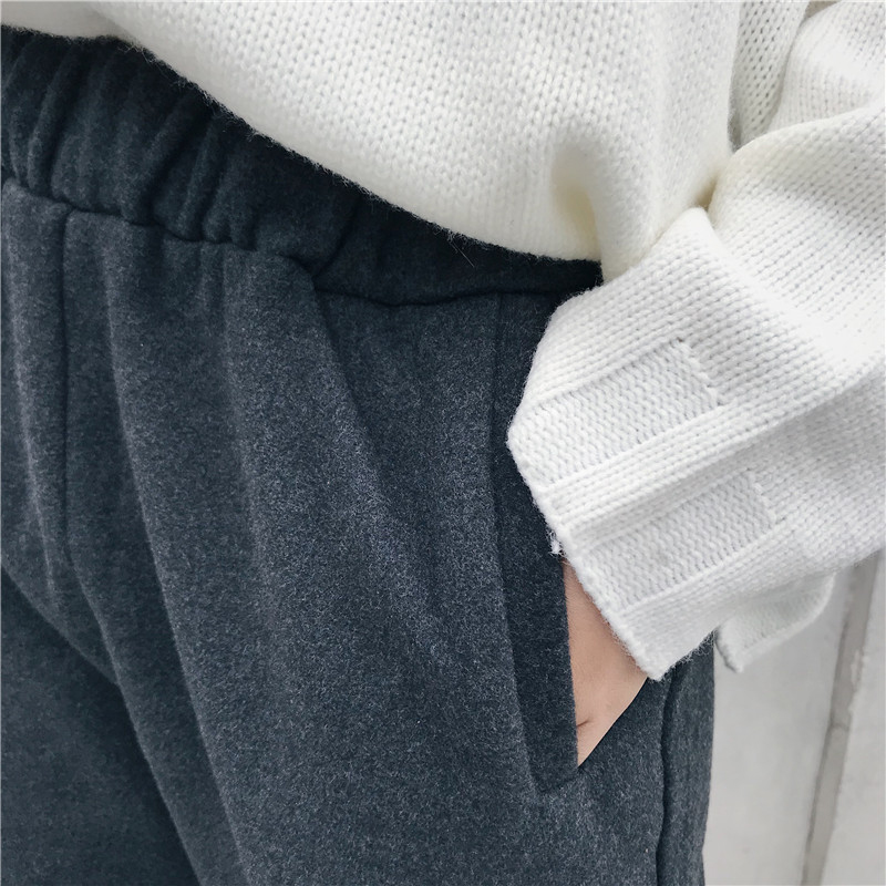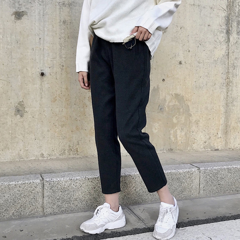 高腰黑色休閑西裝褲子女秋冬裝新款學生復古風寬松毛呢哈倫九分褲