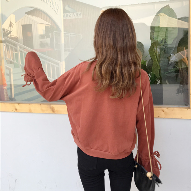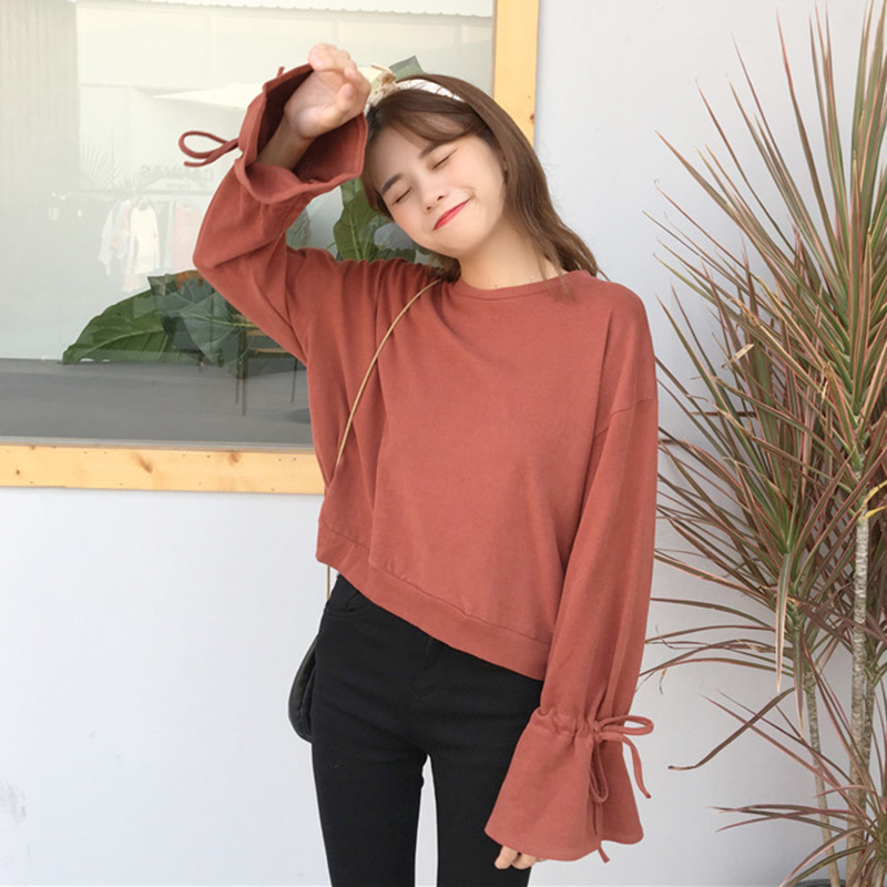 薄衛衣2018新款女秋裝學院風長袖休閑上衣學生喇叭袖套頭短款衣服