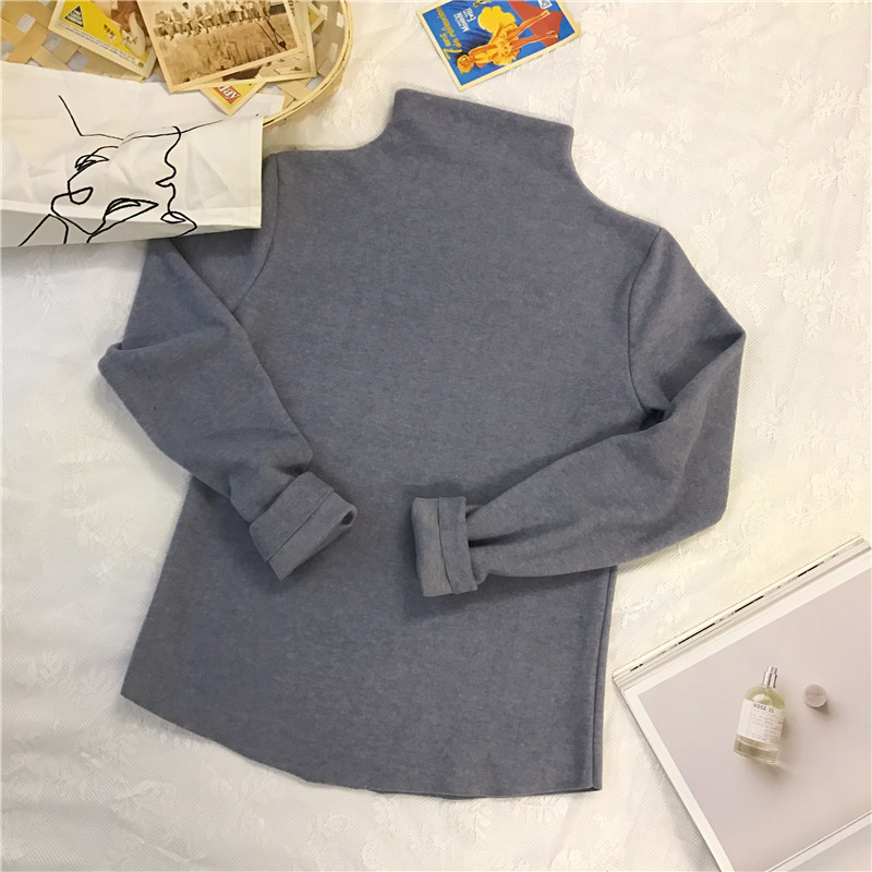 修身半高領打底衫秋季2018新款女裝韓版純色長袖T恤休閑呢子上衣