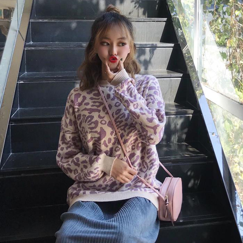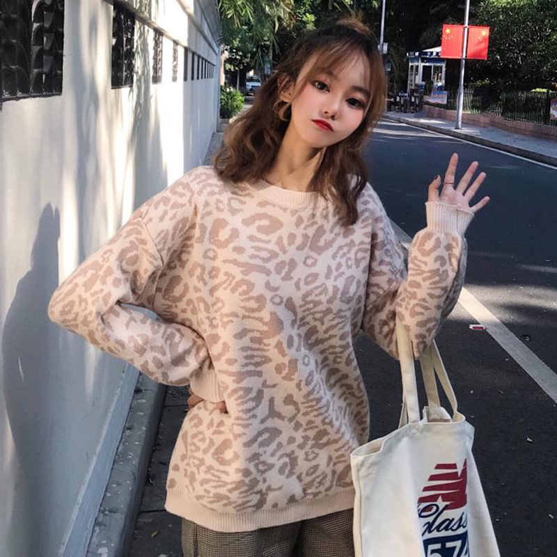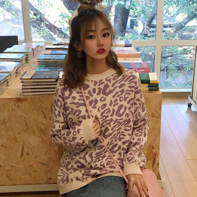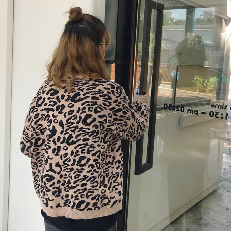 / 慵懶風豹紋毛衣女秋裝新款學生寬松長袖外套冷系女裝港味復古上衣