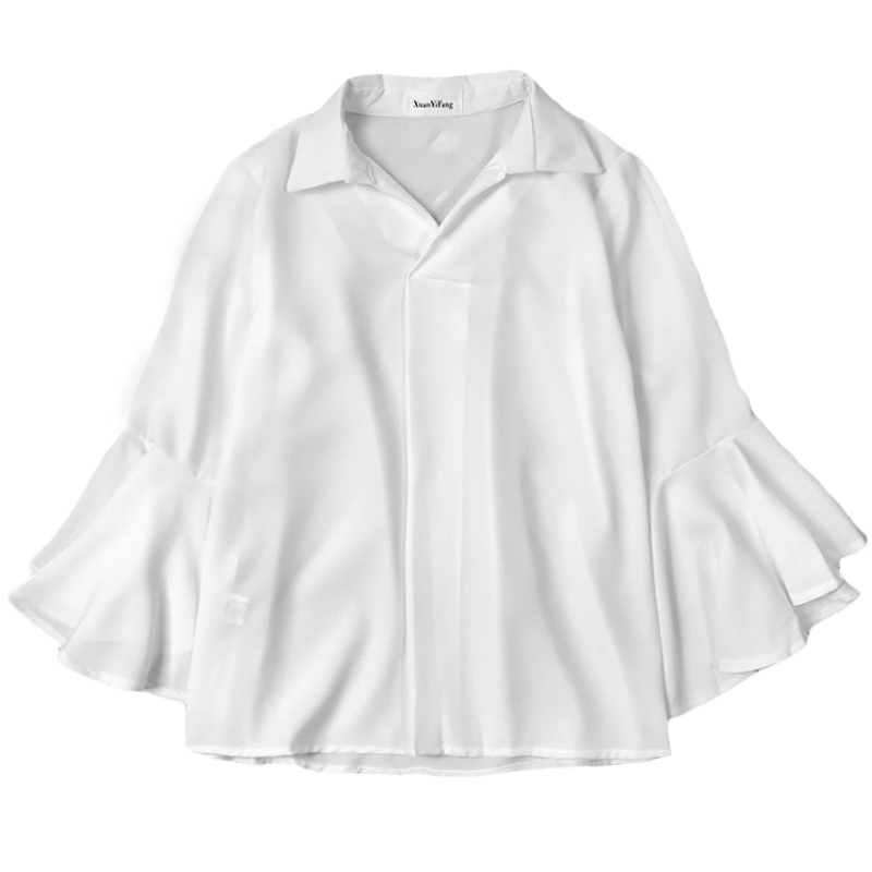 / 秋裝女2018新款韓版簡約喇叭袖雪紡襯衫學生時尚洋氣寬松V領上衣