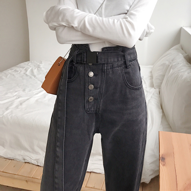 / 怪味少女褲秋冬裝2018新款韓版學生高腰老爹褲寬松顯瘦哈倫牛仔褲