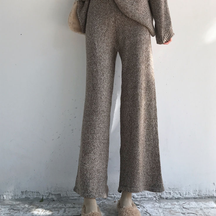 復古慵懶寬松加厚保暖高領毛衣女秋冬新款+高腰顯瘦針織闊腿褲潮