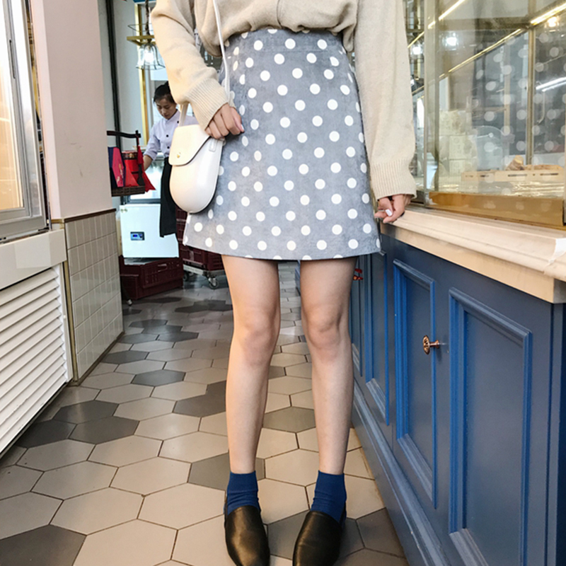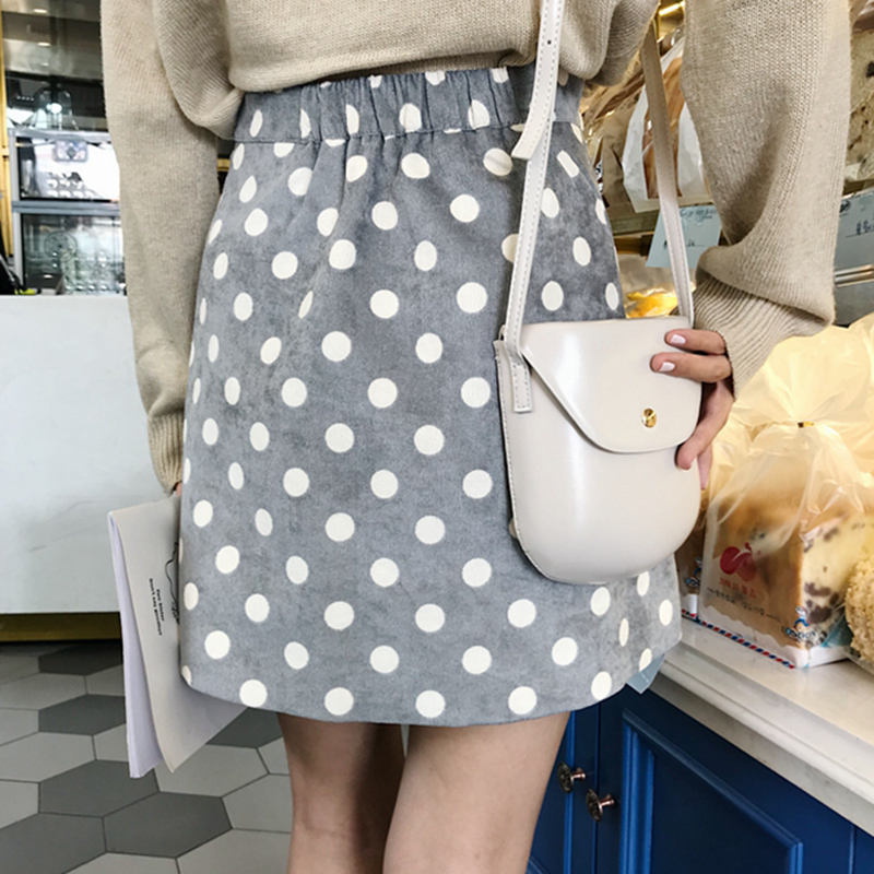 燈芯絨復古風波點A字半身裙子女秋冬裝新款韓版學生高腰顯瘦短裙