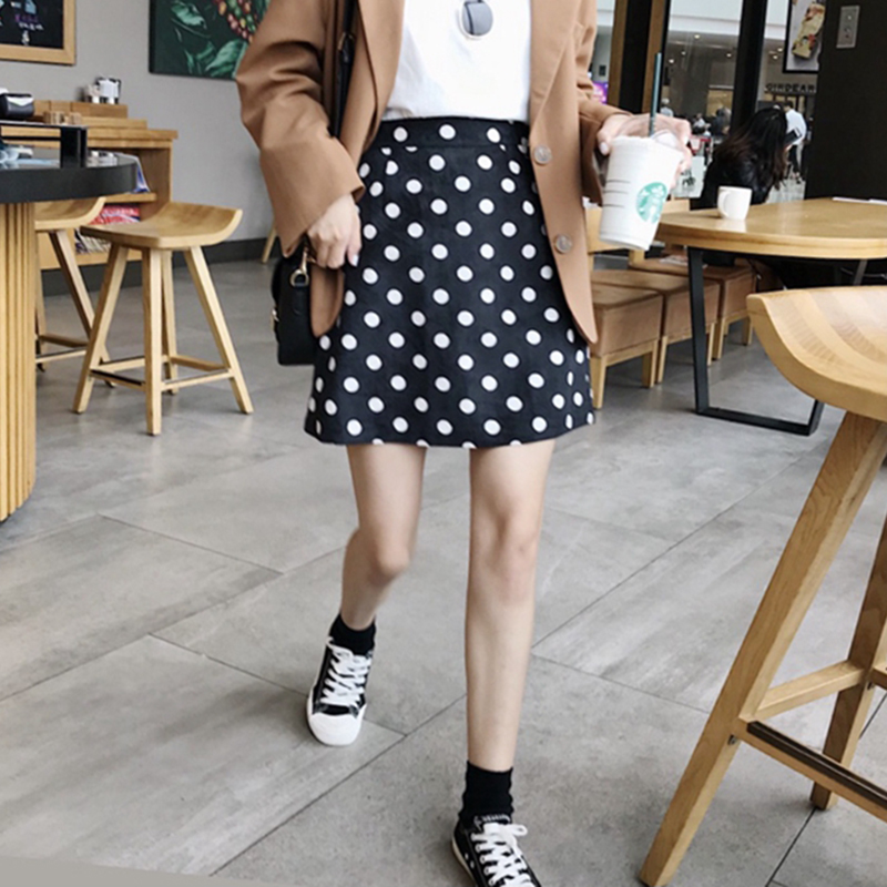 / 燈芯絨復古風波點A字半身裙子女秋冬裝新款韓版學生高腰顯瘦短裙