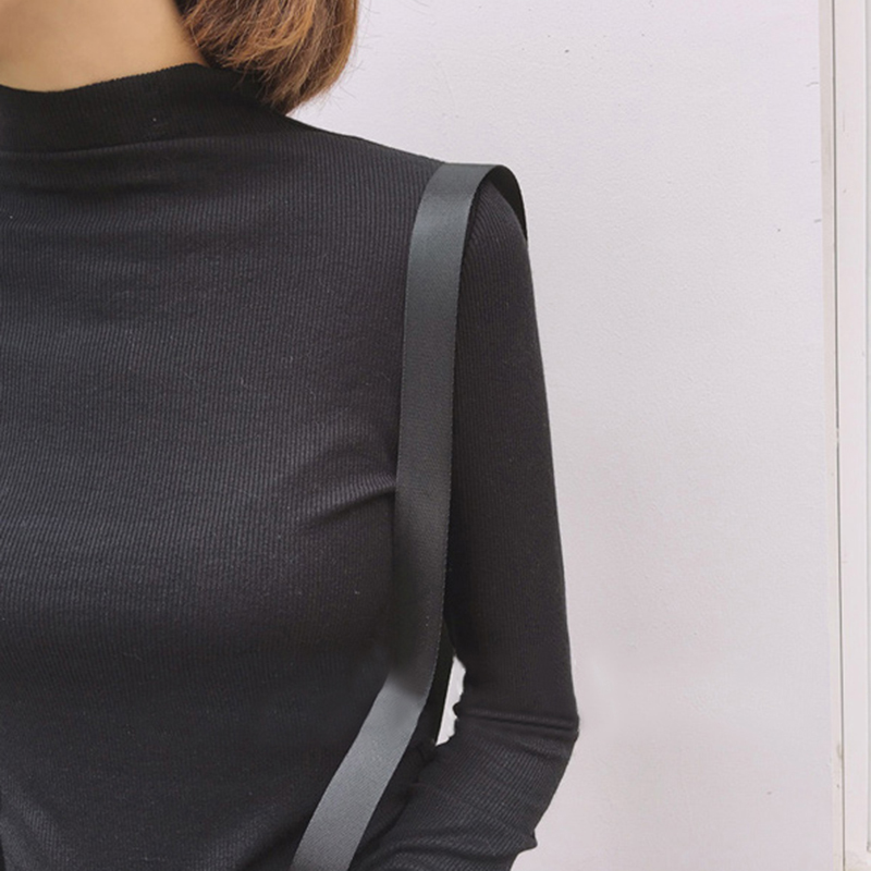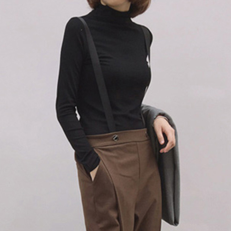 初秋新款女裝半高領彈力螺紋套頭薄款修身顯瘦學生長袖打底T恤衫