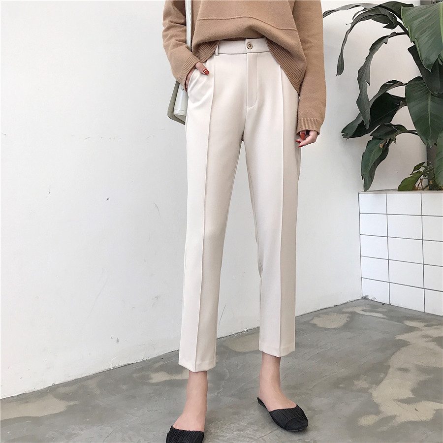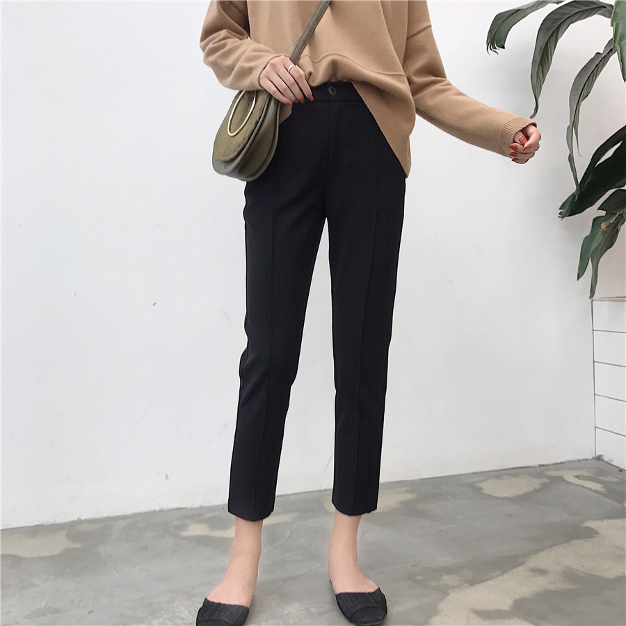 春秋四季百搭簡約直筒九分煙管西裝褲韓版氣質純色顯瘦休閑褲潮女