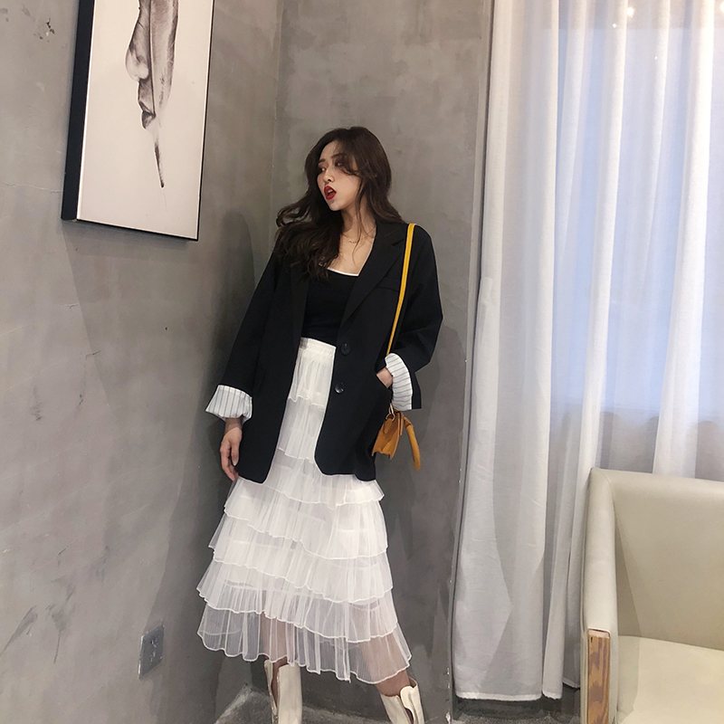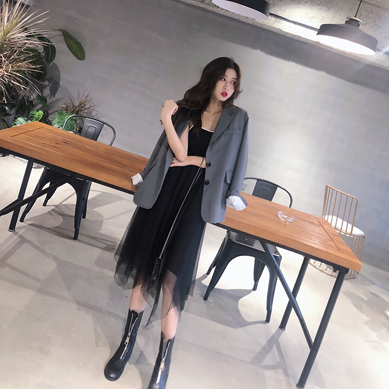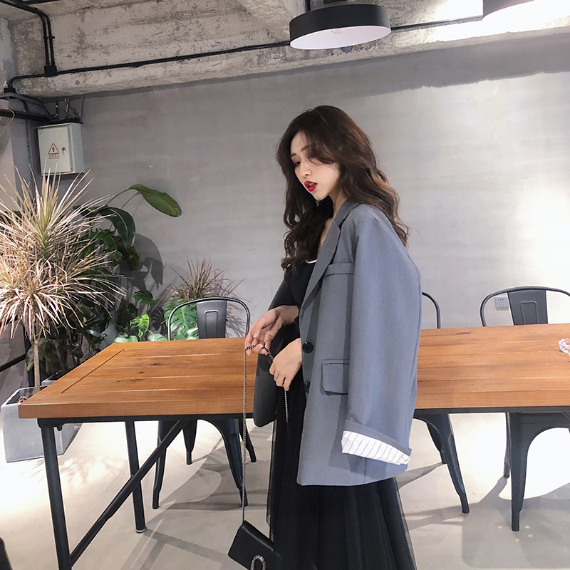 / 韓版chic早秋上衣兩粒扣寬松長袖西服秋裝女2018新款時尚西裝外套