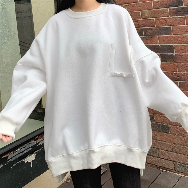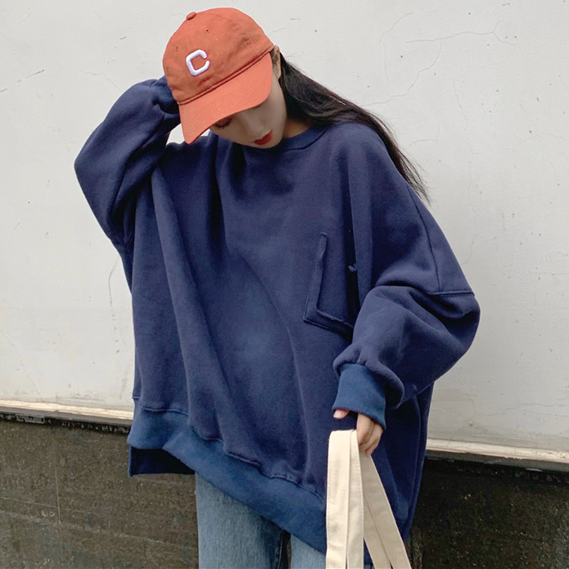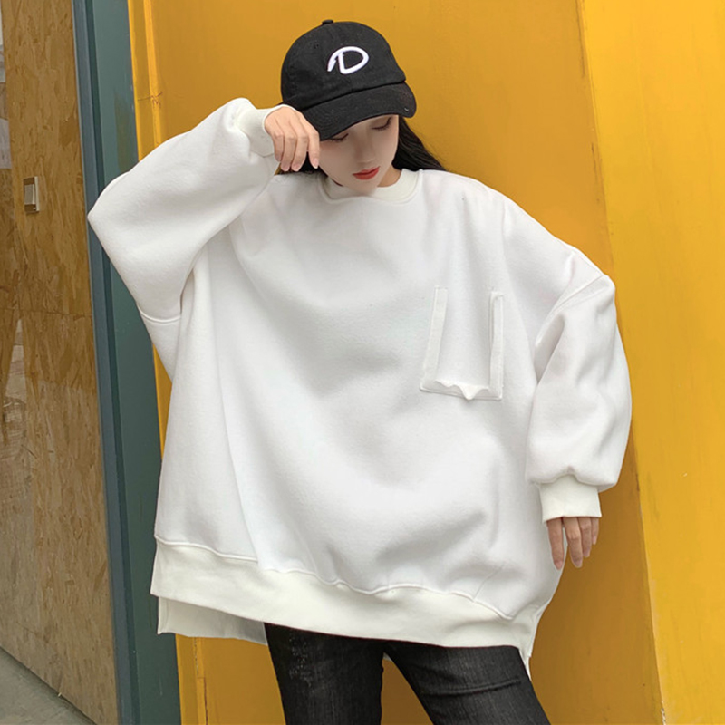 / 學生純色圓領衛衣2018新款女秋冬裝港風寬松加絨外套休閑長袖上衣