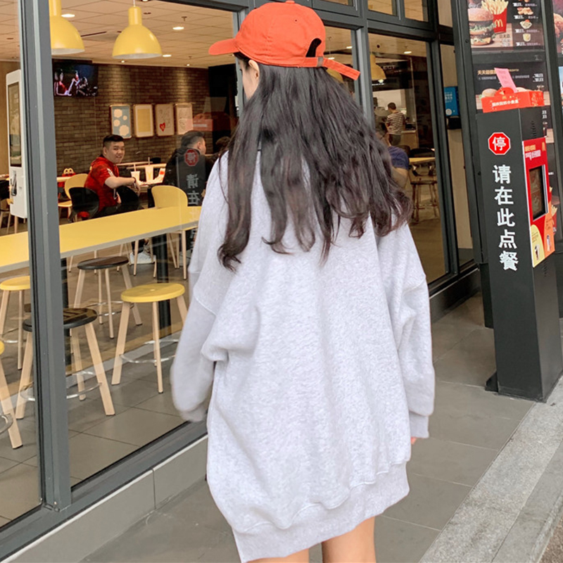 學生純色圓領衛衣2018新款女秋冬裝港風寬松加絨外套休閑長袖上衣